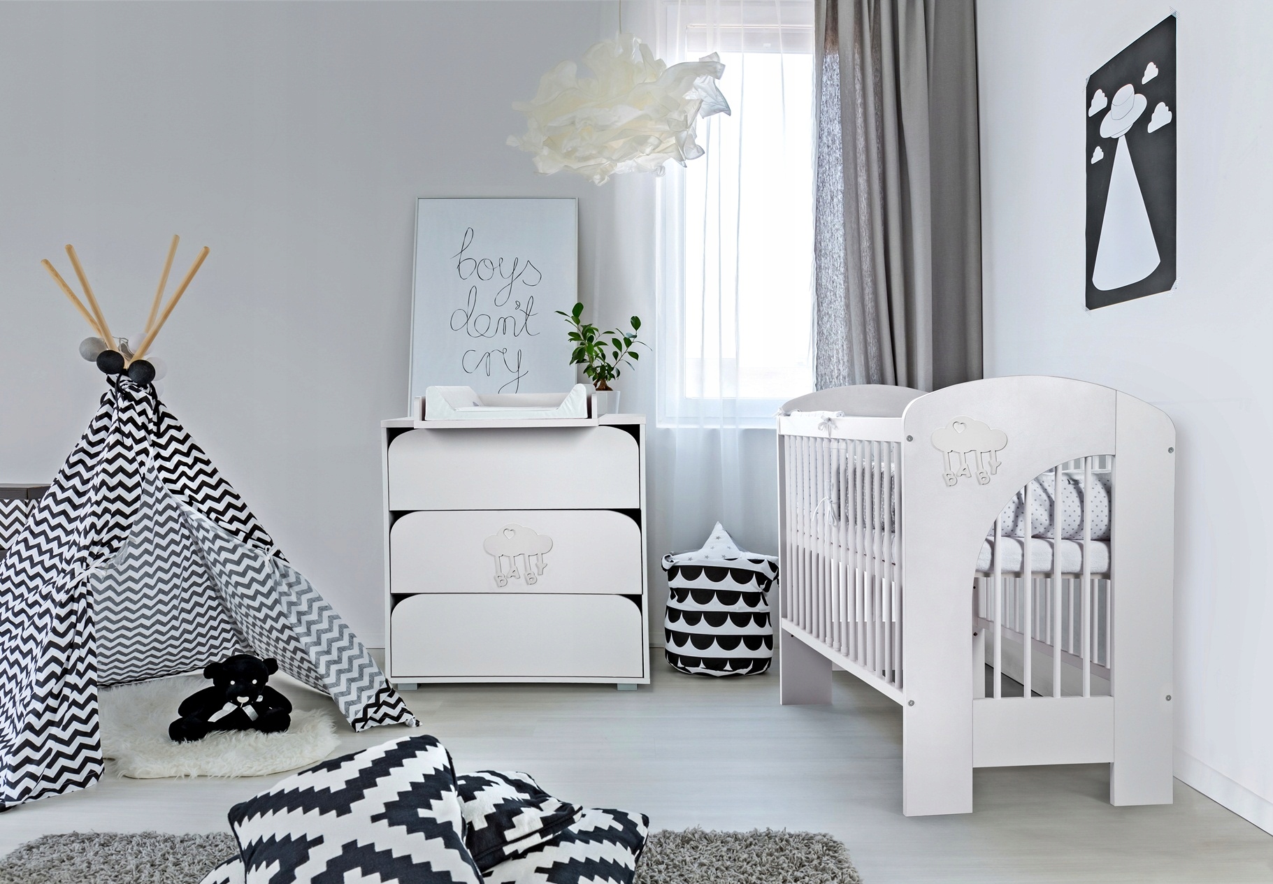 Дитяче ліжечко 120x60 NEL хмара Білий + матрац