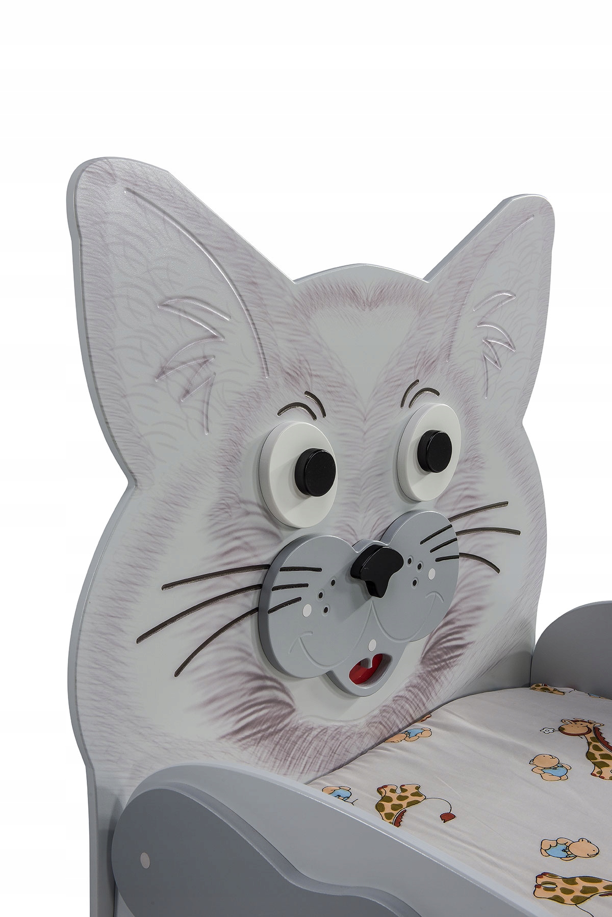 Дружнє, сірого кошеня -ліжко легко вписується в декор кожної дитячої кімнати, створюючи унікальний простір для малюка, в якому він може не тільки спати, але й відпочити та грати.