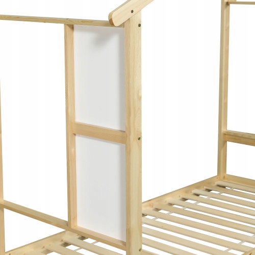 Дерев'яні ліжка, дитяче, односпальне, з веселою гіркою, масивні ламелі, красивий візерунок даху, з дошкою для писання, сосна + МДФ + фанера, натуральне, 90x200 см