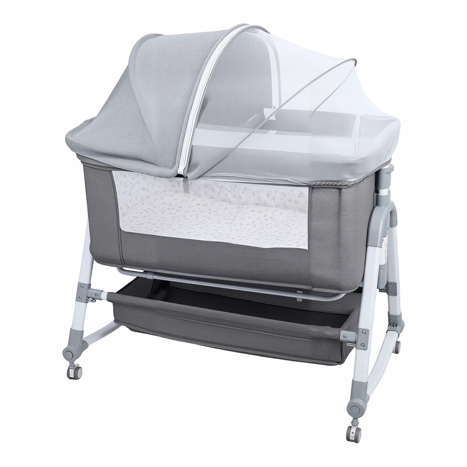 Baby bassinet has a removable sun screen to ensure no mosquito bites. Bassinet with large curvature cradle mode makes baby more comfortable. Quick release screw design ensures the bed is more secure. The bedside children's bed also comes with a noise-cancelling wheel with a brake to ensure easy movement and safe parking. Крім того, дитяче ліжко має кошик для зберігання для кращої організації щоденних потреб дитини.