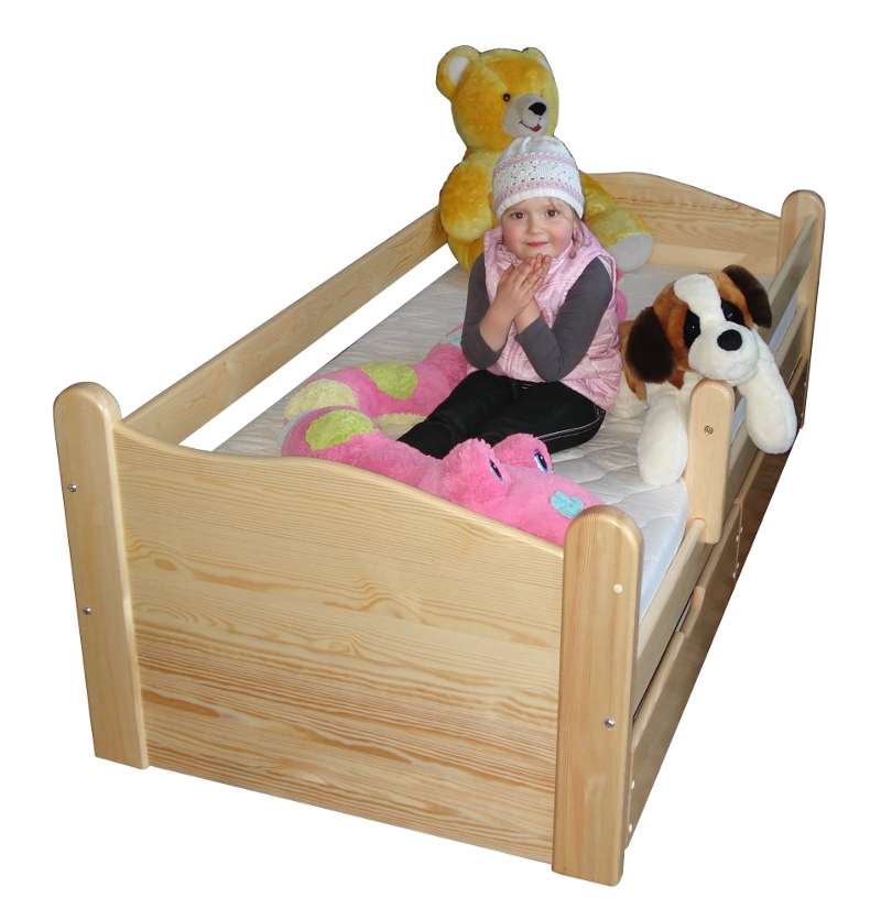 Ліжко розроблено таким чином, що його можна розмістити в будь-якому місці кімнати. Вам потрібно лише поміняти місцями короткий бар’єр, який захищає дитину від випадання. Ми також можемо повністю демонтувати захисний бар'єр (короткий і довгий), коли впевнені, що дитині він не потрібен (для забивання отворів використовуємо заглушки, що входять в комплект).