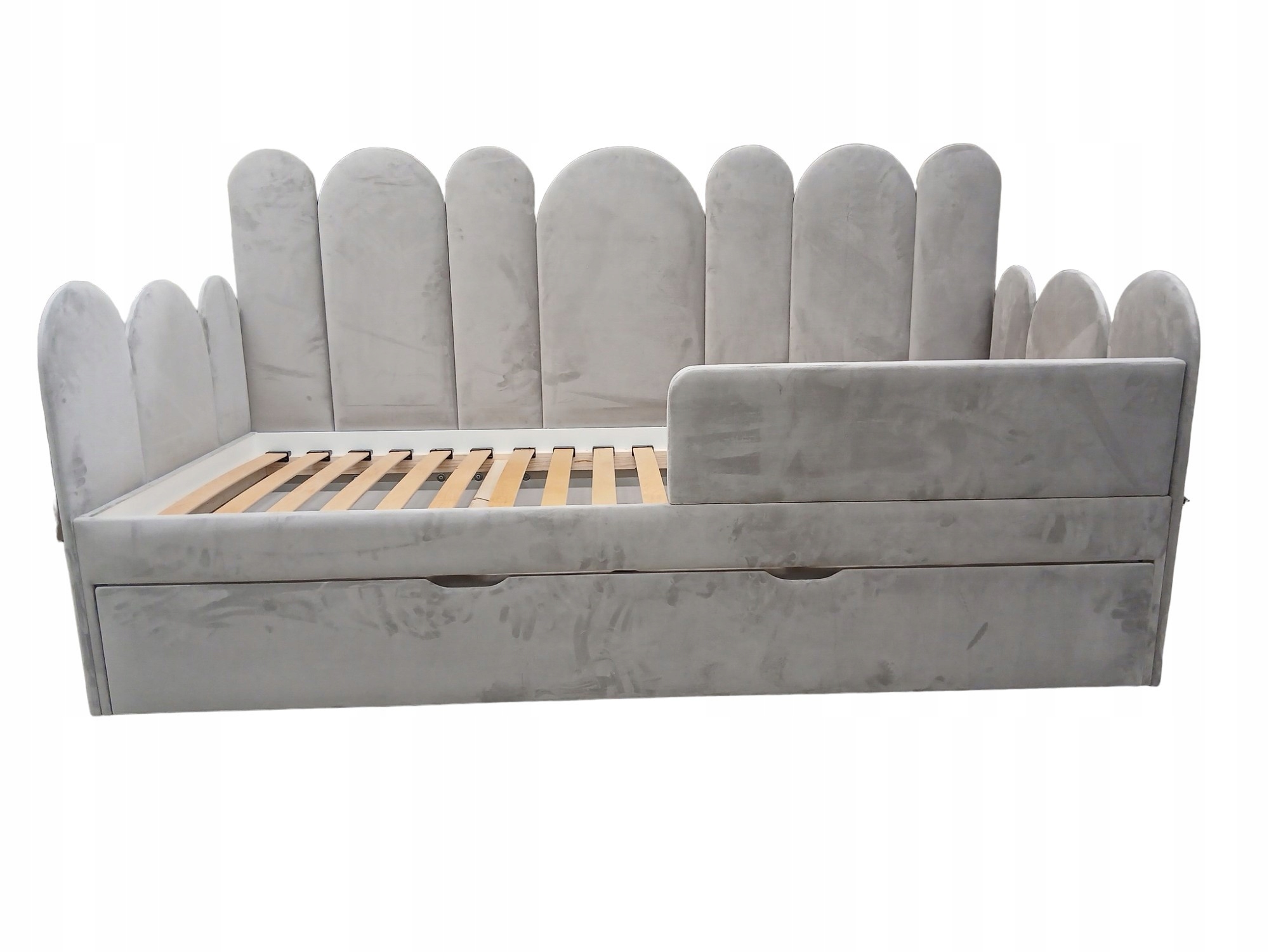 - Рамка, виготовлена з пружинних планів, виготовлених з міцної та міцної берези з радіусом відхилення 400 мм. 6см) Спляча поверхня, оббита тканиною, обраною з ліжечка