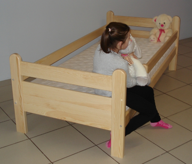 Ліжко розроблено таким чином, що його можна розмістити в будь-якому місці кімнати. Вам потрібно лише поміняти місцями короткий бар’єр, який захищає дитину від випадання. Ми також можемо повністю демонтувати захисний бар’єр, коли впевнені, що він не потрібен дитині (для забивання отворів використовуємо заглушки, які входять в комплект).