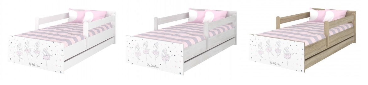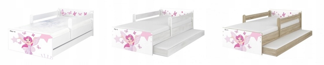 У комплект входить практична Ящик, засувається під ліжко на коліщатках - це означає, що його можна розсунути праворуч і ліворуч. Можна використовувати для зберігання постільної білизни та улюблених іграшок ваших дітей. Дві поручні безпеки довжиною 100 см також включені, щоб захистити дитину від падінь. Вони розміщуються з боків ліжка, тобто ви вирішуєте, куди їх поставити.