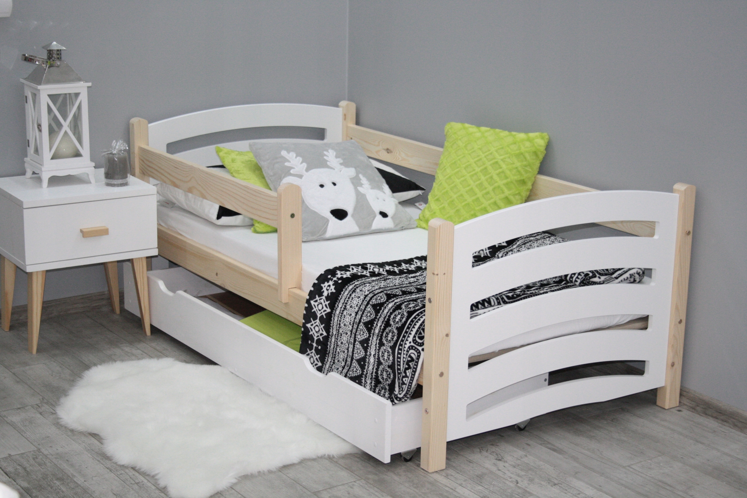 Ліжко дитяче дерев'яне MELA 80X160 біла та сосна ВИРОБНИК + каркас