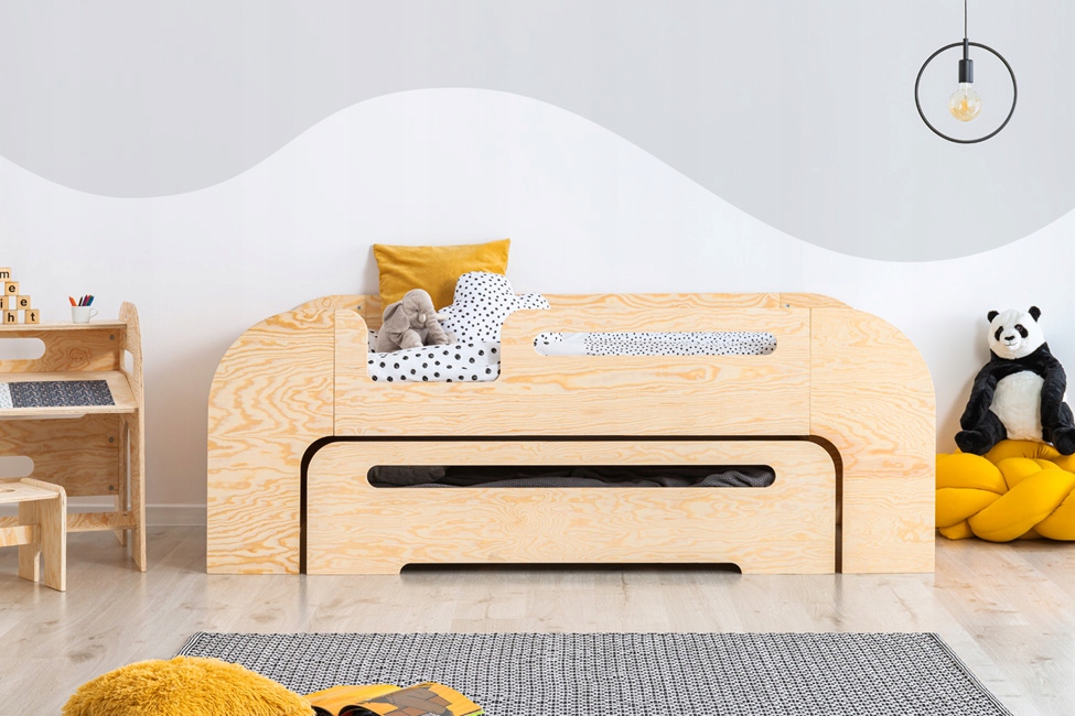 Довго відомо, що ліжко - ідеальне місце для гри з кожною дитиною. Там він влаштовує свою колекцію опудалів або переглядає свої улюблені книги або вивчає перші фіолки. Сучасна форма ліжко -ліжкового ліжка з закругленими краївами - це чудове рішення, яке гарантує безпеку як під час розваг, так і сну. Додатковою перевагою є два невеликі кроки збоку від ліжка, після чого дитина спокійно дістається до свого ліжка, якщо він виявить, що класичний вхід не дуже ефективний. Звичайно, ми не забули про те, що є найважливішим, тобто безпекою під час сну. Тому ліжко Каджа має стабільний захисний бар'єр навколо всіх меблів, краї яких також були закруглені. Чудовий дизайн та колір природного сосни будуть ідеальними як у кімнаті хлопчика, так і дівчинки!