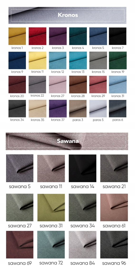 Тканина KRONOS - щільна синельна тканина з ніжним блиском. Завдяки своїй міцній однорідній структурі Kronos дуже стійкий до пошкоджень і розривів. Оригінальні кольори тканини є відповіддю на очікування та тренди ринку.