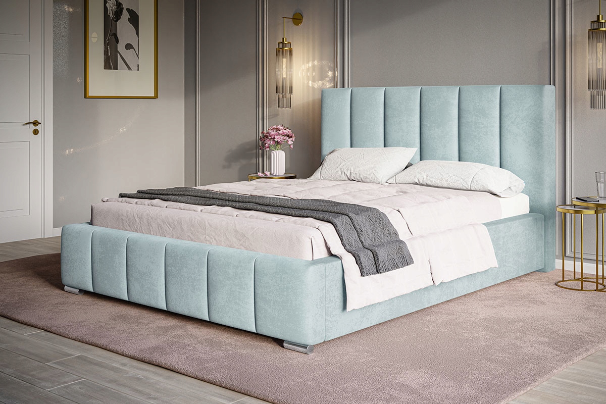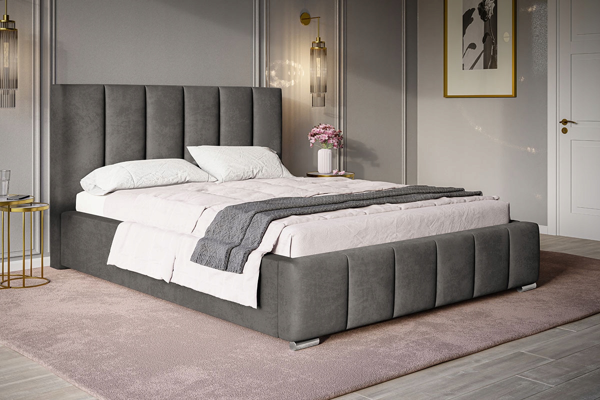 Ліжко з м'якою тканиною RAVEN - ретельно виготовлене, міцне ліжко польського виробництва. Ідеально виглядає в будь-якому інтер'єрі. Має горизонтальні шви на узголів’ї та передній частині, що надає йому елегантності та стрункості.