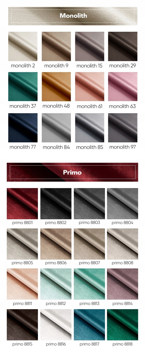 МОНОЛІТ - Тканина оксамитового типу. Тканина покрита спеціальним захисним шаром, створюючи гідрофобне покриття, яке захищає від швидкого просочування рідини. Це запобігає миттєвому вбиранню води тканиною, викликаючи рідину щоб конденсуватися на поверхні матеріалу. Це дає нам час очистити його м’якою тканиною або рушником. папером, обережно злити пролиту рідину