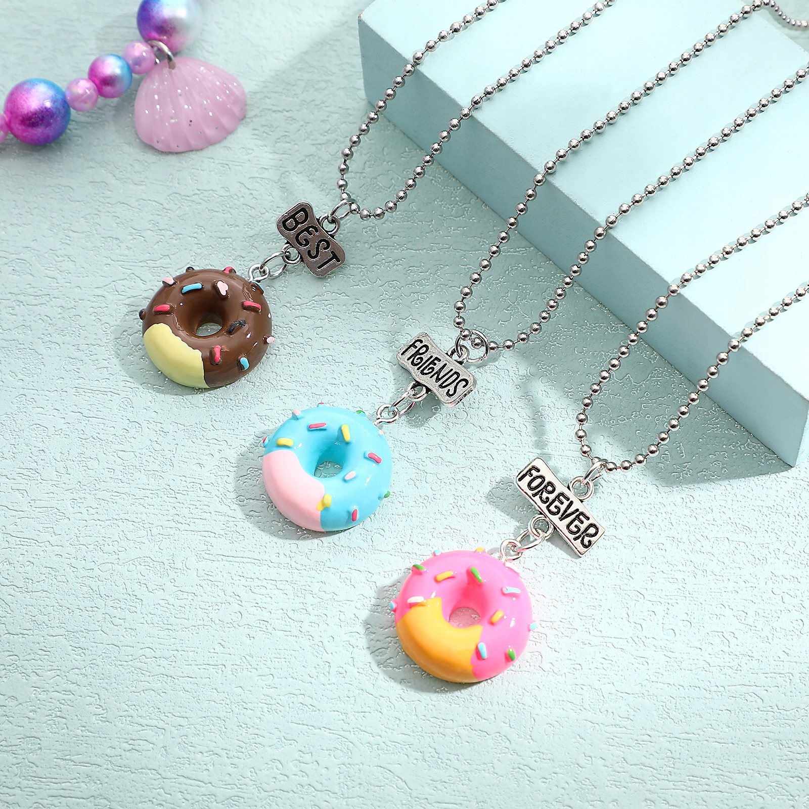 Це креативні намиста для дівчат, милий і стильний кулон-пончик, яскравого вигляду та яскравого кольору, виготовлені з високоякісних матеріалів, які нелегко деформувати чи вицвітати. Завдяки унікальному дизайну це намисто можна поділитися з друзями, демонструючи дружбу між вами.