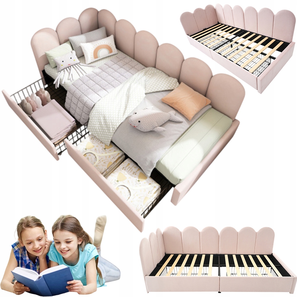 Дитяче односпальне ліжко 90x200 см з ящиками та м'якою рамкою