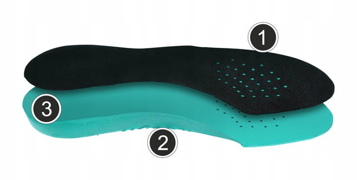 Профільовані устілки з каналом виготовлені з матеріалу EVA, зовнішній шар покритий оксамитовим матеріалом, дуже добре стабілізують стопу, зберігаючи її правильне положення під час ходьби.
