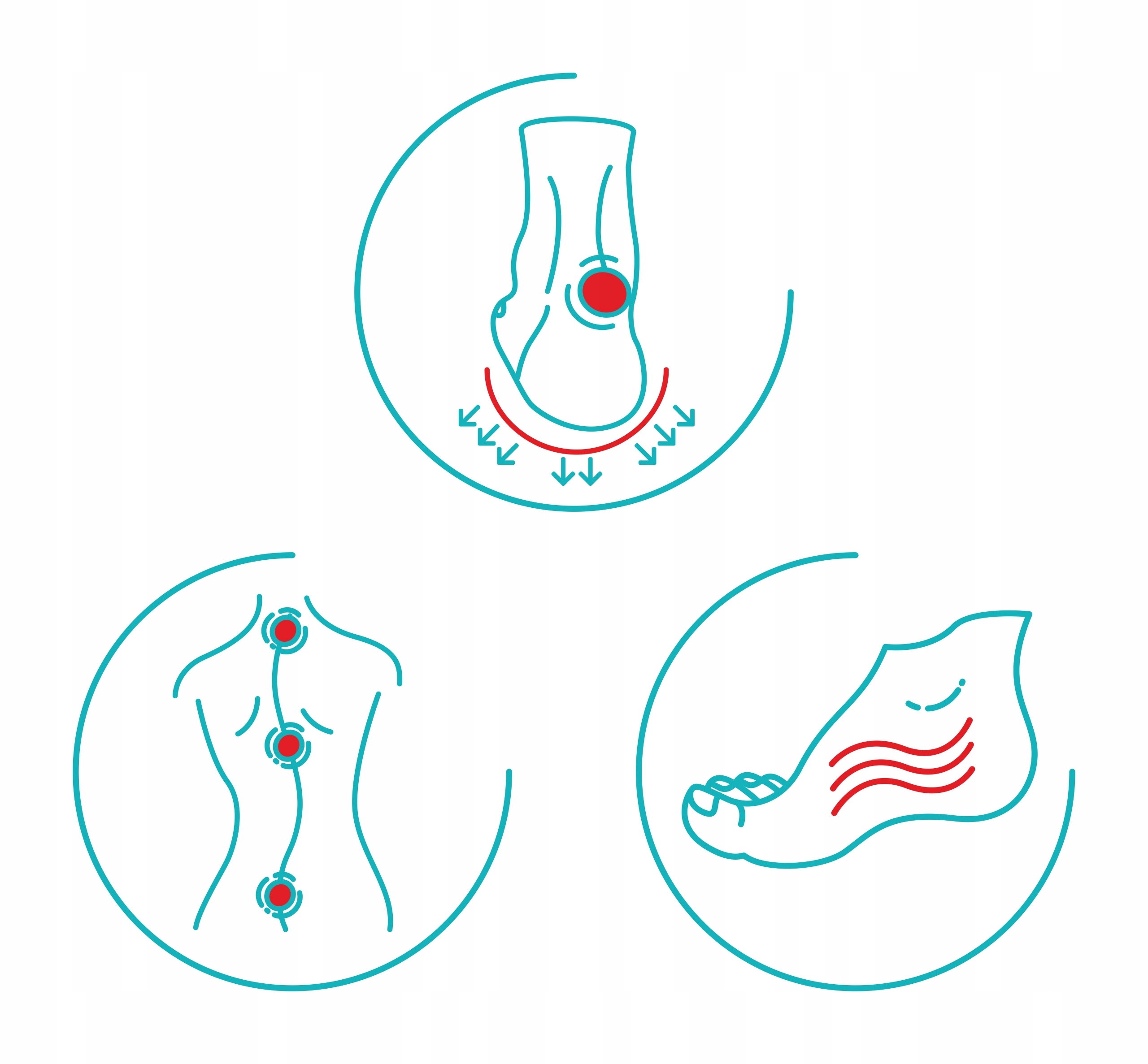 - 🦶 вплив на м'язи та суглоби стопи з заданою інтенсивністю, адаптованою до ваги користувача;