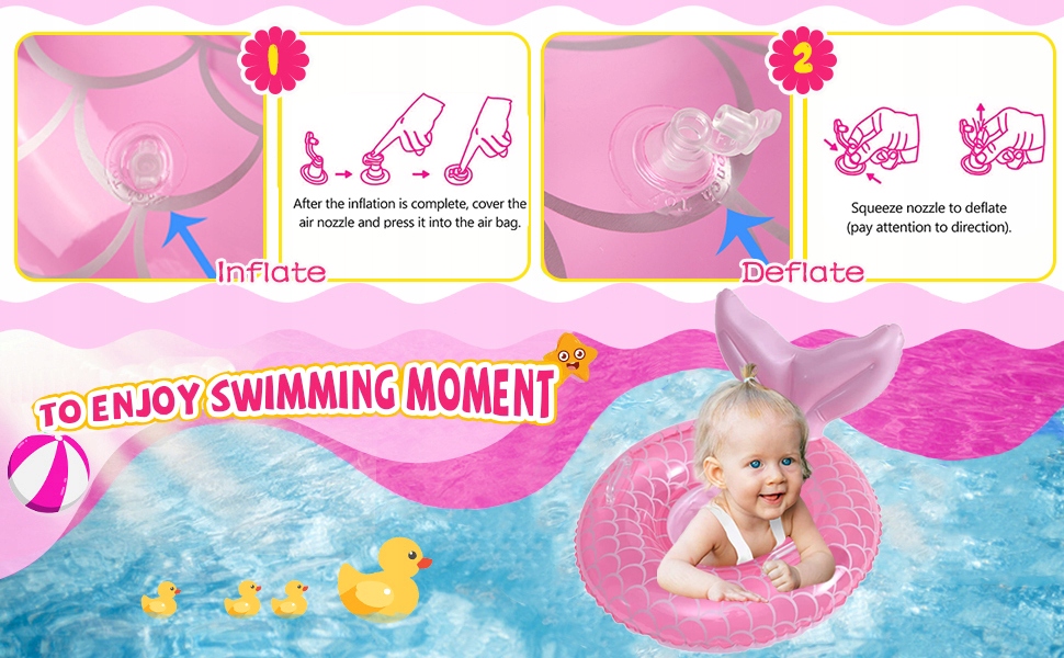 Подвійний запобіжний клапан, конструкція подвійної камбер, міцніша підтримка. Ми спеціально розробили дитяче місце, щоб ефективно зменшити центр ваги та запобігти ковзанню або падінню дитини під час плавання.
