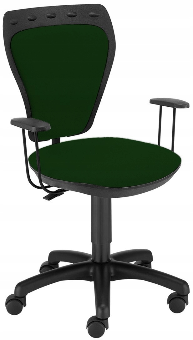 Дуже популярний товар від відомого польського виробника, висока якість виготовлення, основа з міцного пластику, металеві підлокітники з пластиковими накладками. Сидіння та спинка оббиті тканиною.