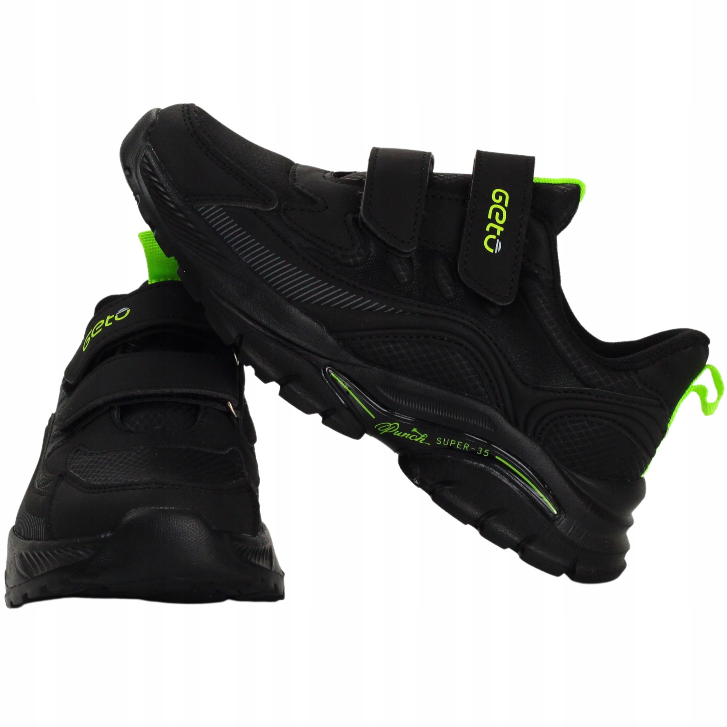 Спортивне взуття для хлопчиків із застібкою на липучці, чорне із зеленими елементами. Вони ідеально підходять як повсякденне взуття. Крім того, вони легкі, м'які і забезпечують зручність і комфорт використання. Шкіряна вставка. Застібка на липучці полегшує взування.