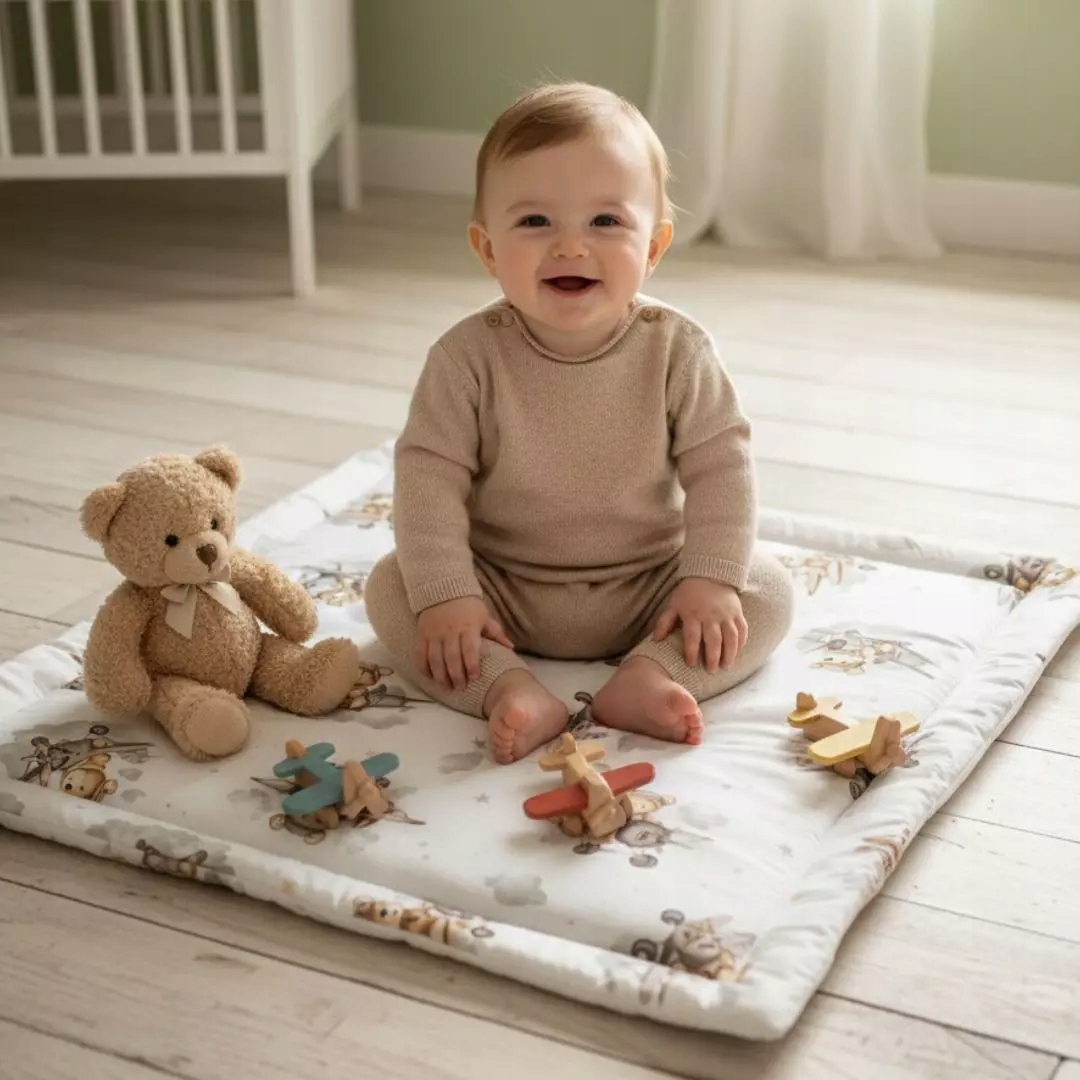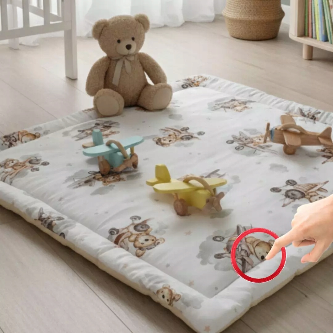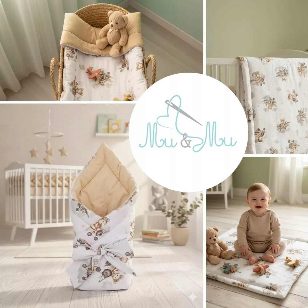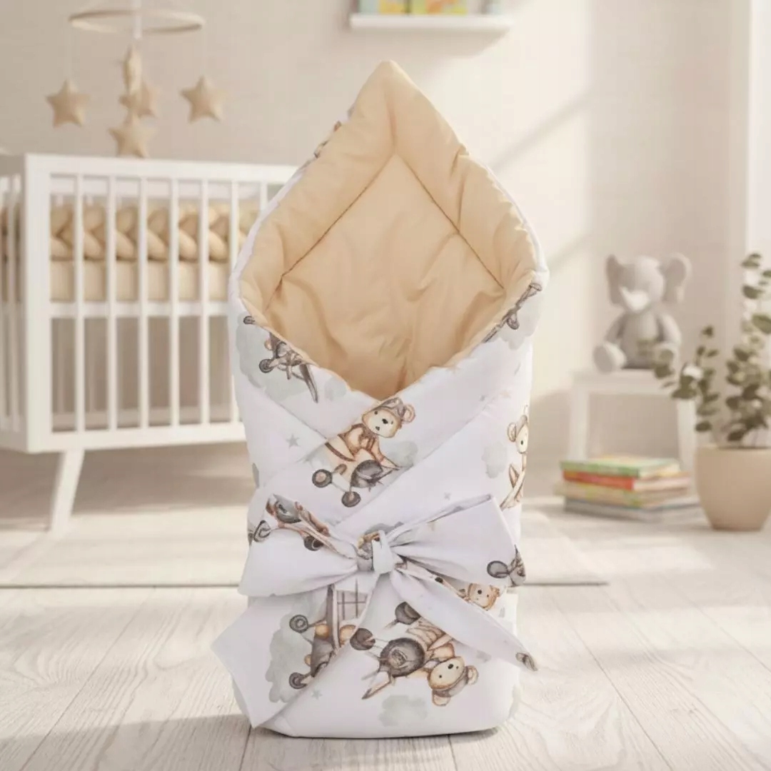 - Палички та кокони: мотив плюшевого ведмедика-пілота створює враження безпечної, повітряної подорожі. М'який кокон, загорнутий у літаючих плюшевих ведмедиків, дарує дитині відчуття безпеки та комфорту, ніби в обіймах хмар.