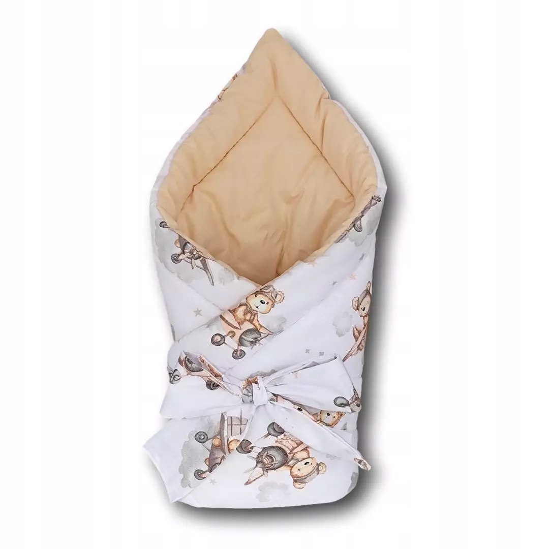 Дитяче сповивання з бантом, ведмедики Тедді на літаках, бежевий Mu&Mu