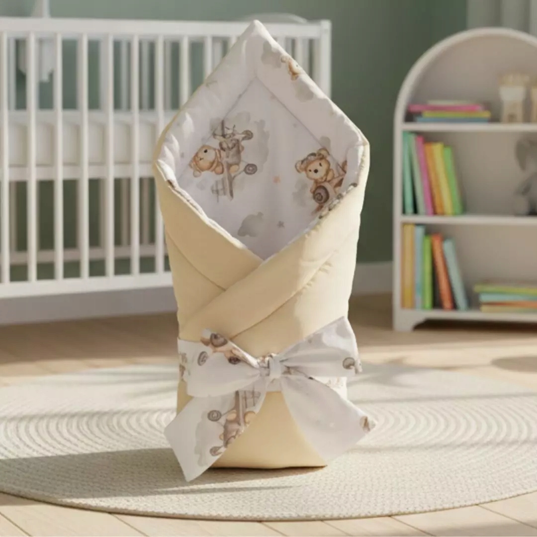 Завдяки елегантному банту пелена ідеально огортає новонародженого, допомагаючи йому почуватися в безпечному лоні матері. Це полегшує засинання та забезпечує міцний сон.