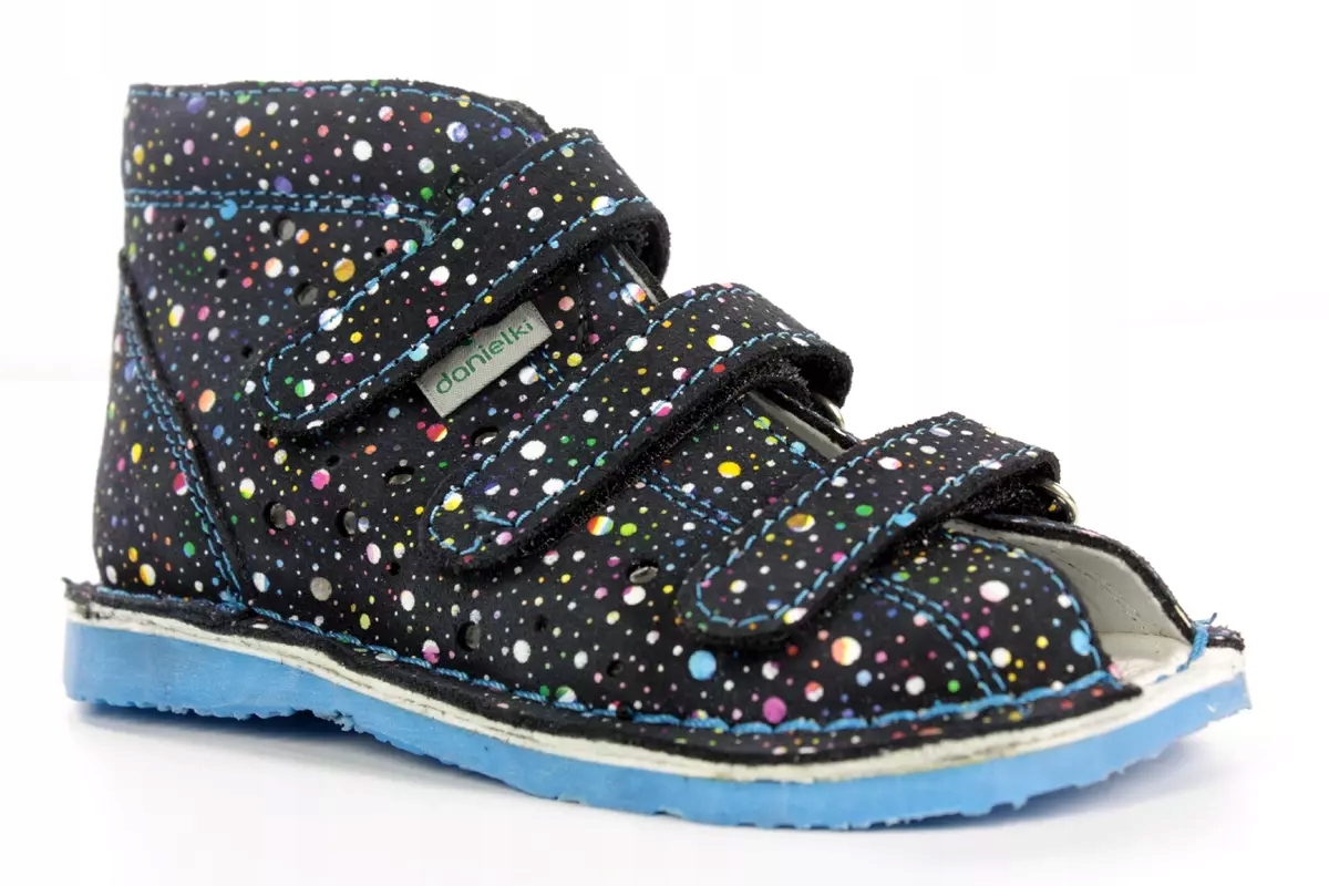 - Дитячі Danielki T125L - універсальна модель, яка підійде як хлопчикам, так і дівчаткам. Різнокольорові крапки на темній верхній частині дуже добре виділяються.
