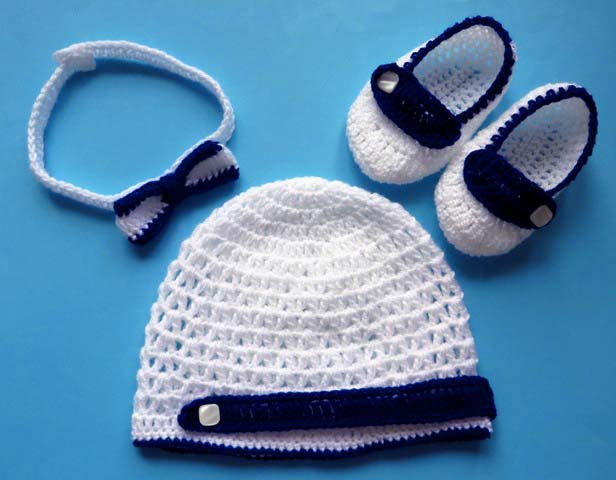в'язані гачком шапочки, взуття, пов'язки, метелики, набори з 2-х, 3-х предметів