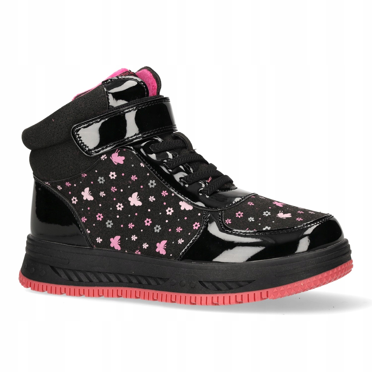 Стильні та зручні зимові черевики для дівчат від American Club. Поєднання чорного з рожевими акцентами та мотивом квітка-метелик робить туфлі модними та дівочими.