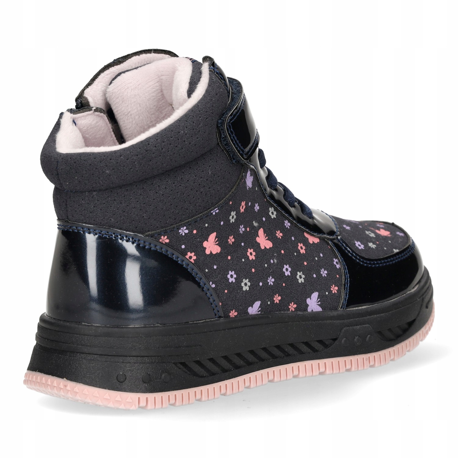✨ Модні та практичні зимові черевики для дівчат від бренду American Club. Темно-синій колір з фіолетово-рожевими деталями та чарівним мотивом квітів і метеликів робить туфлі ідеальними для стилю дівчат.