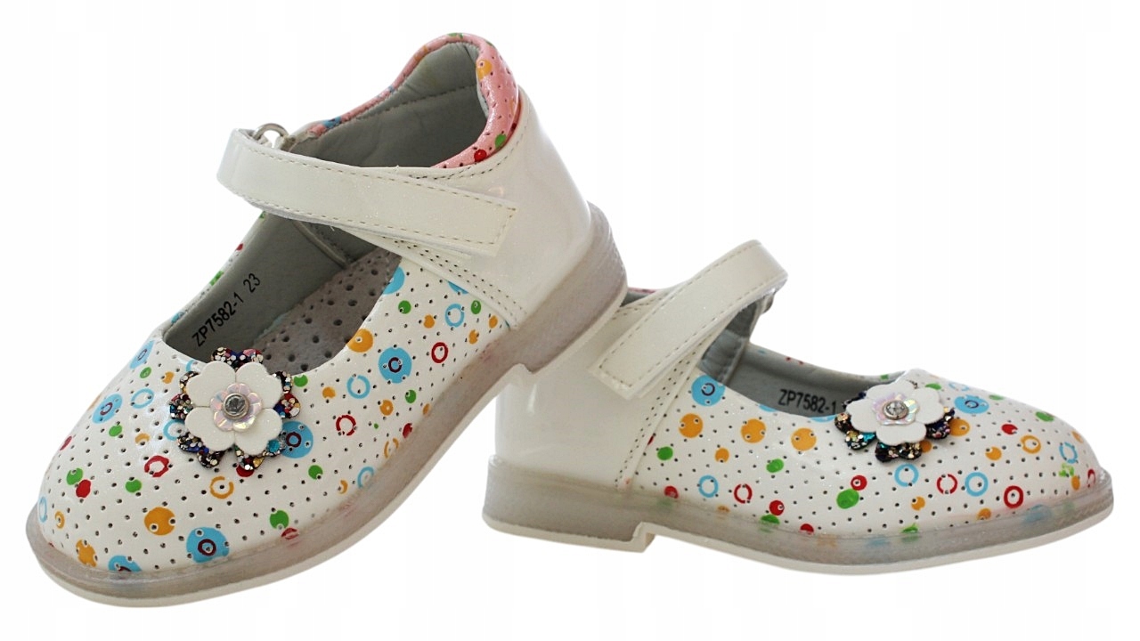 живопис балерини будуть радувати кожну маленьку дівчинку! Зроблені з органічної шкіри, вони поєднують елегантність з комфортом, все в чудовому білому кольорі. Це взуття - ідеальний вибір для будь -якого випадку, або для прогулянки, до дитячого садка!