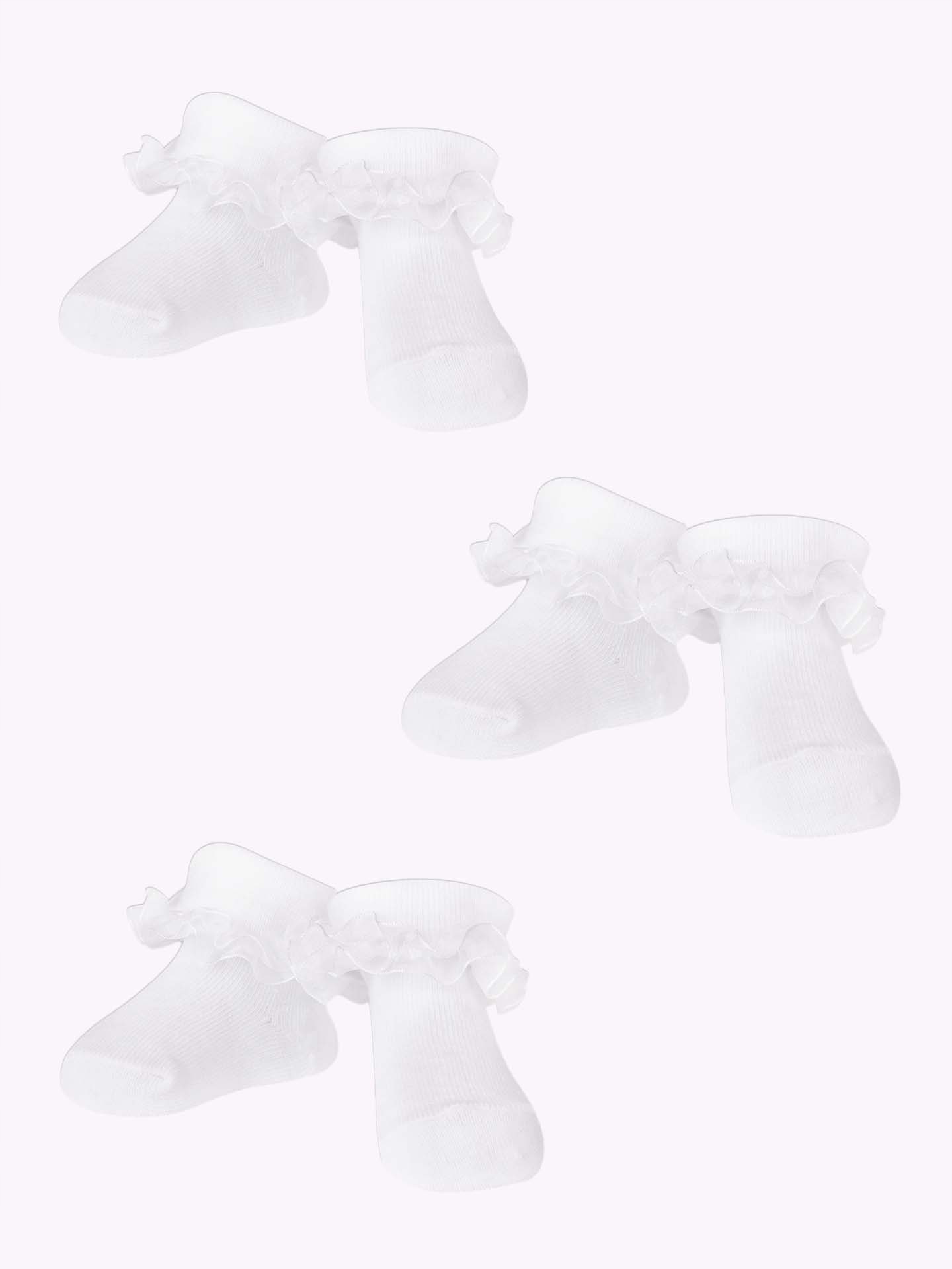 шкарпетки для дівчат, доступні в практичному три -Пак . У Universal білі , що відповідає багатьом стилям і багато разів. Ідеально підходить для всіх церемоній або фотографій.