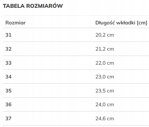 - Розмір 31 -Довжина устілки [см]: 20,2 см