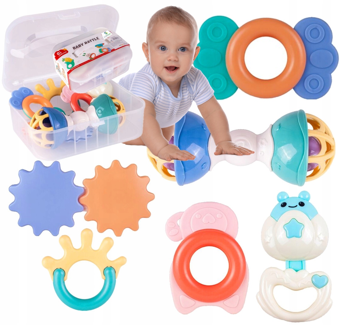 ДИТЯЧІ БРязкальця та прорізувачі для зубів у безпечній коробці на замку, 6 шт.