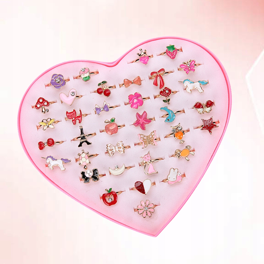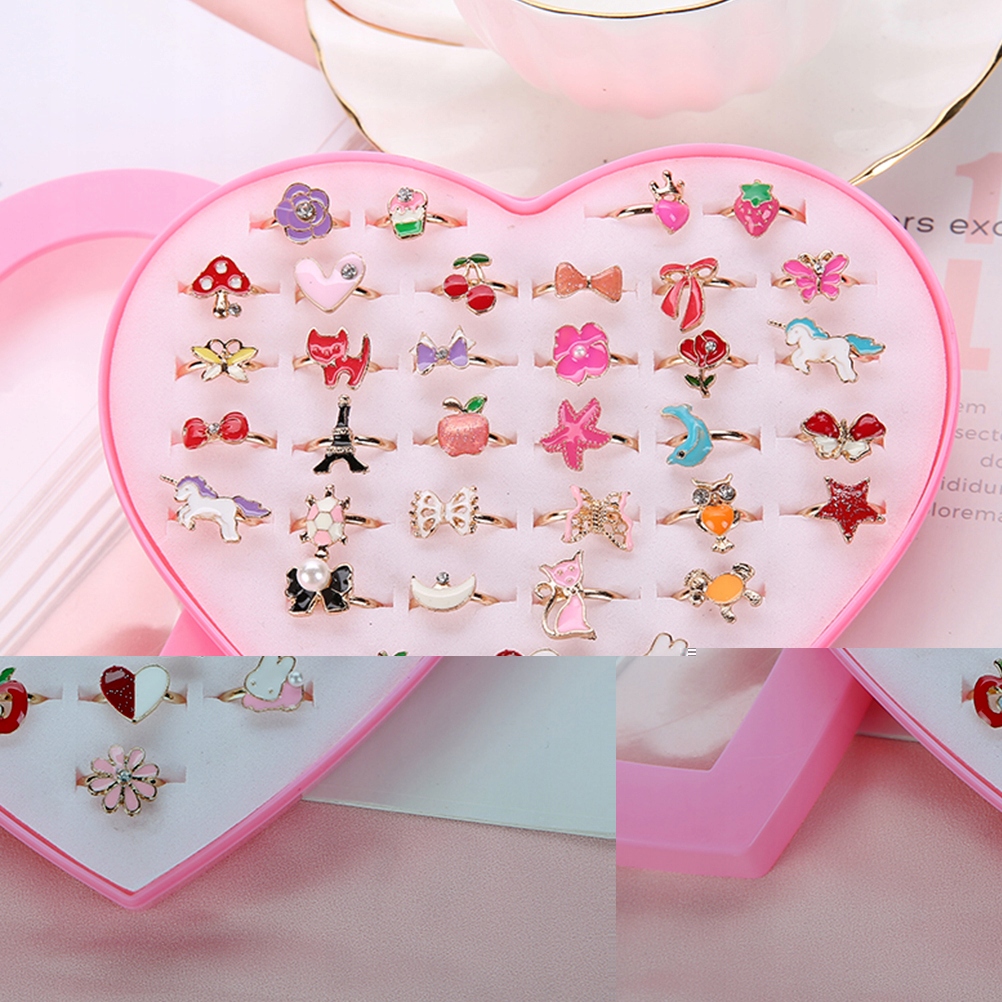 - Дизайн кільця зі сплаву з 36 деталей, який зачарує ваших дітей. Сердечко, метелик, квітка та багато інших різнокольорових діамантових візерунків, дуже гарно. Можна використовувати як наповнювач для подарунків на день народження, наповнювач для піньяти, уявне чаювання, карнавал, скриню зі скарбами тощо.