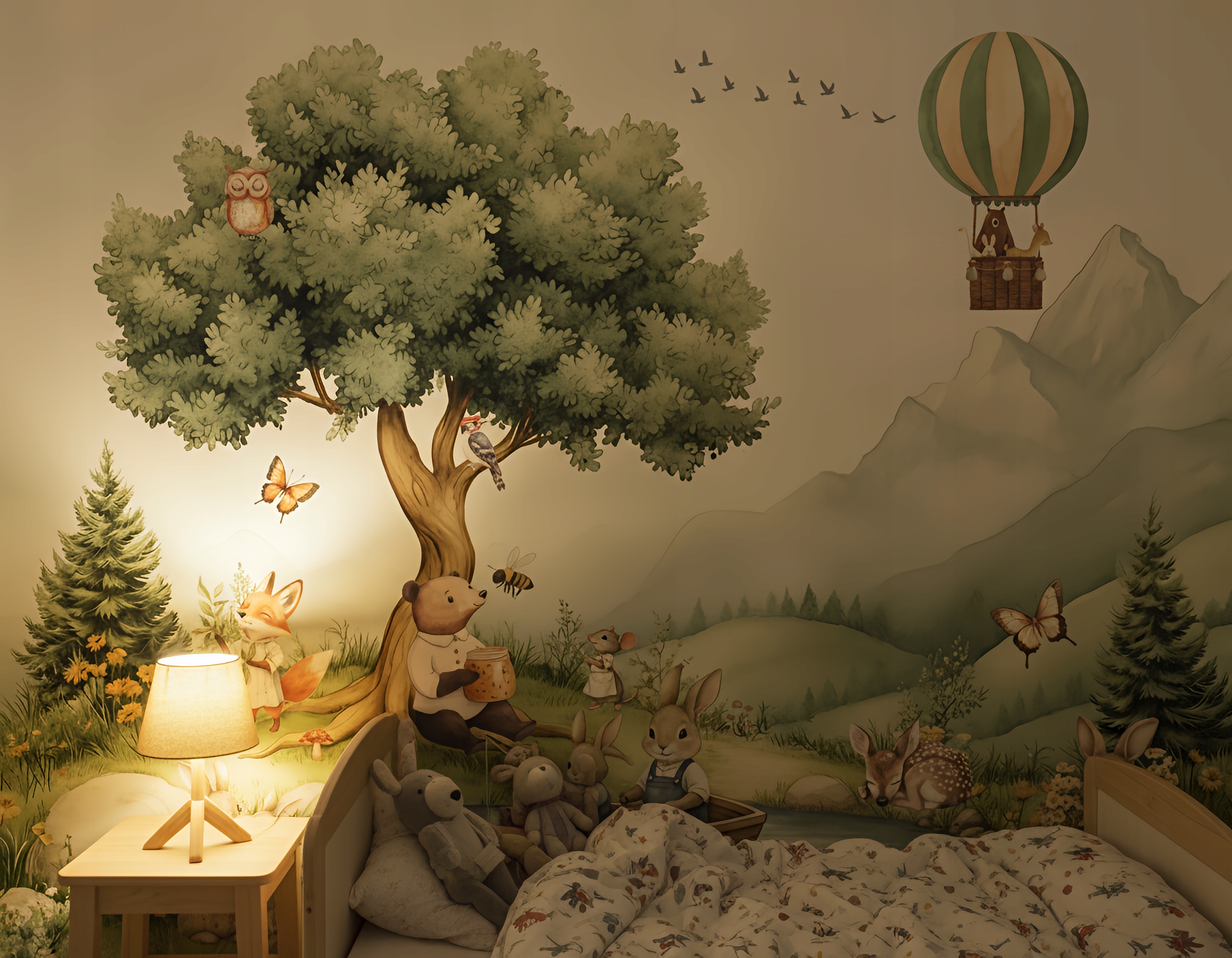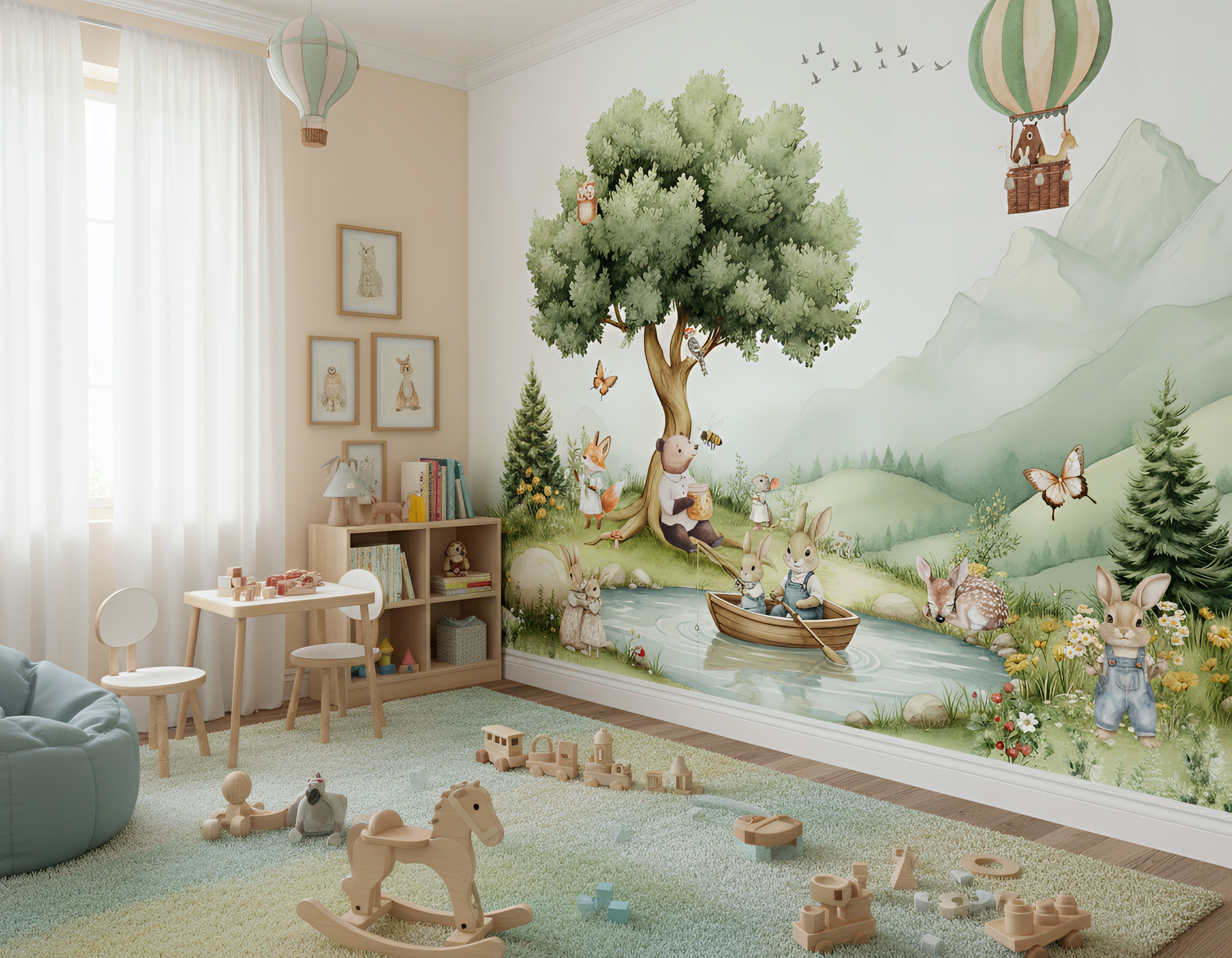 Фотошпалери для дітей Шпалери зайці, зайчики, лісові кролики, ліс, Balloon Mountains