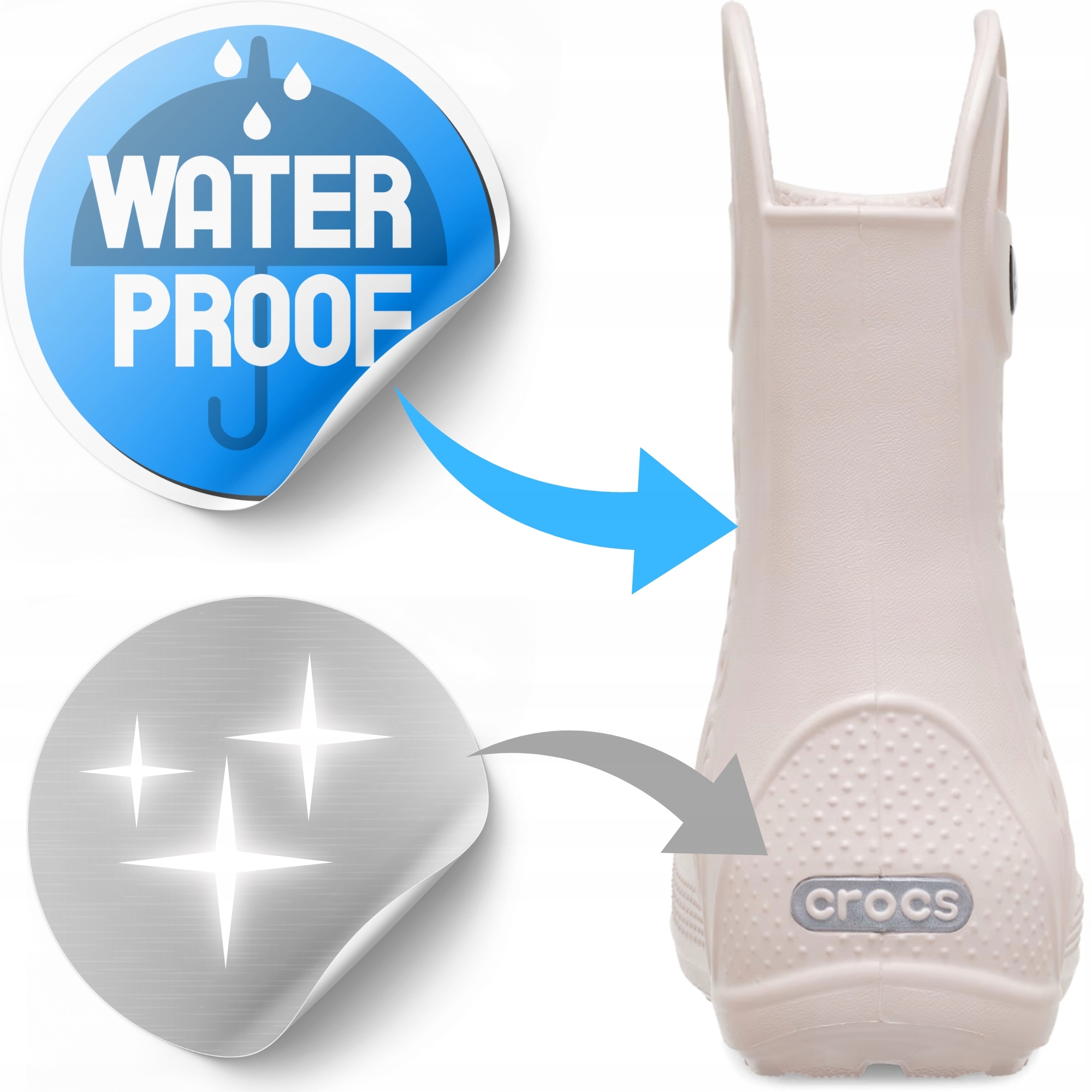 ⭐️ Завдяки використаному матеріалу черевики Crocs Wellington абсолютно водонепроникні. Вони не пропускають воду, що дозволяє дітям вільно стрибати в калюжах, не ризикуючи промочити ноги.