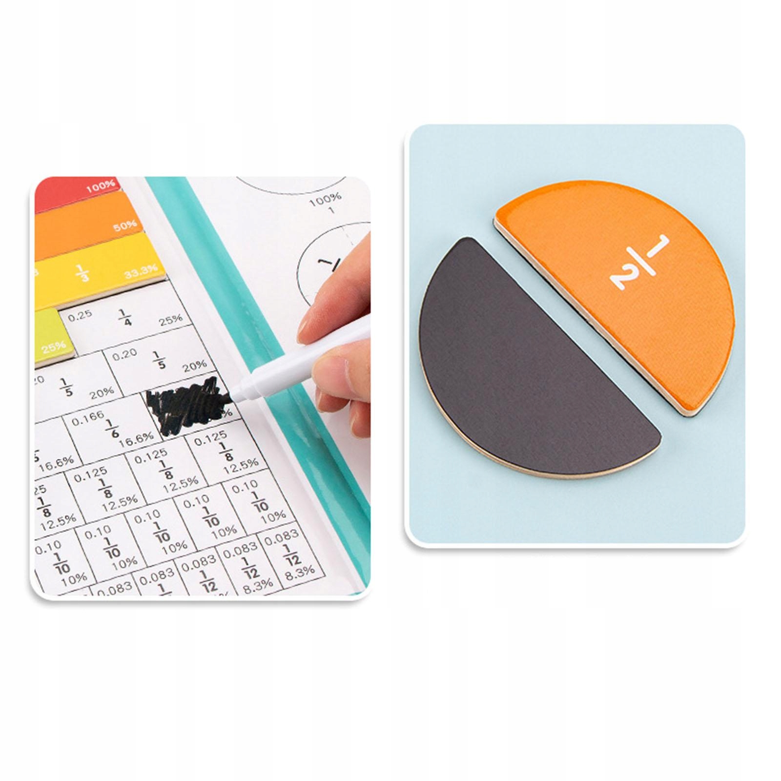Все, що потрібно для вивчення дробів: повний набір, що містить 54 блоки (1, 1/2, 1/3, 1/4, 1/5, 1/6, 1/8, 1/10 та 1/12) математичні символи.