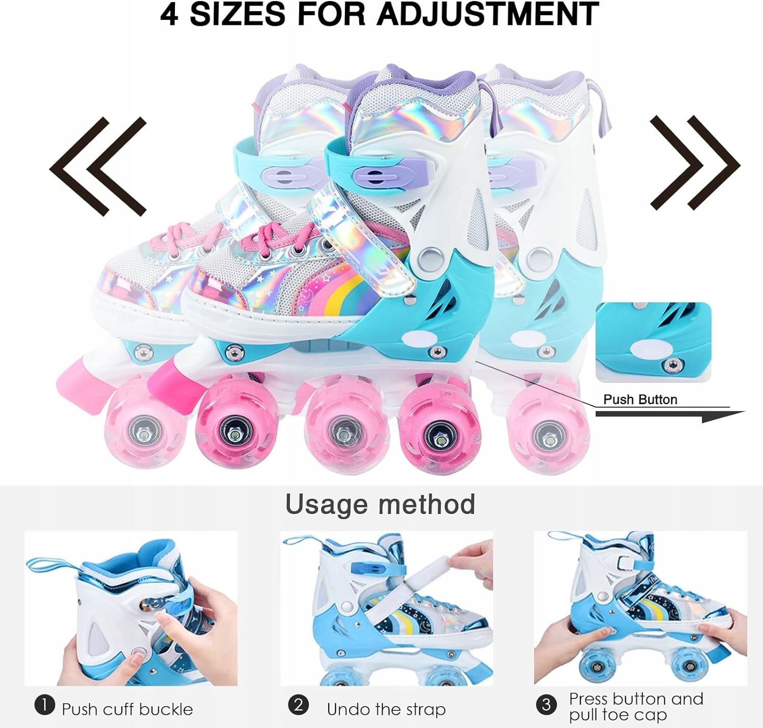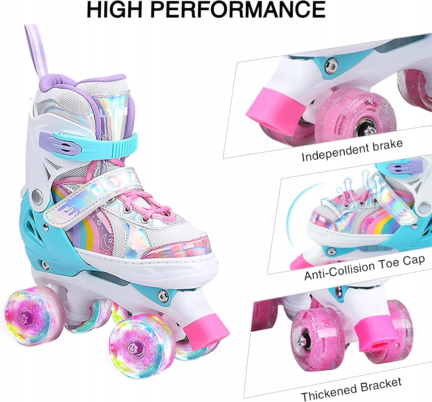 Дитячі роликові ковзани OLYSPM оснащені вісьмома світловими колесами, які автоматично вмикаються, коли ви починаєте кататися.