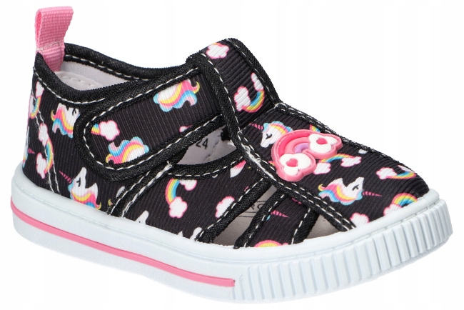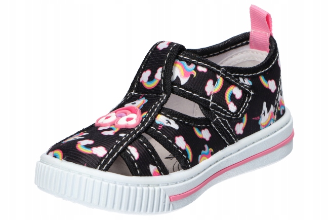 Дівчачі босоніжки American Club® – ідеальне взуття для літа та дитячого садка. Легкі, повітряні та зручні, вони забезпечують комфорт під час повсякденного носіння. Виготовлені з м'якої тканини, оснащені профільованою шкіряною вставкою, вони підтримують правильний розвиток стоп дитини. Застібка на липучці дозволяє легко надягати та швидко знімати. Різнобарвні візерунки з веселками та єдинорогами надають взуттю казковий, радісний характер, який сподобається кожній дівчині.