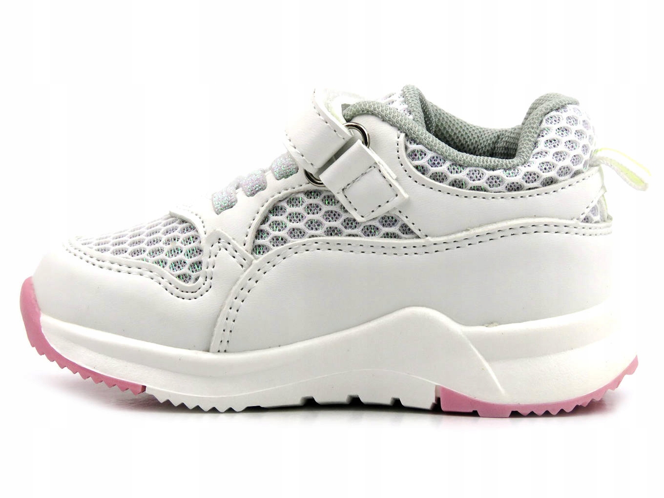 Представлена модель - це дитяче спортивне взуття, виготовлене з натуральної шкіри у поєднанні з сітчастою тканиною. натуральна шкіра на м'якій губці в вставці забезпечує адекватний мікроклімат для ніг дитини та комфорт на кожному кроці на кожному кроці дитини. Завдяки округленим, широким Тоасом пальці дитини не пригнічені. Це підтримує належний розвиток стопи. Закріплюючи липучки та гнучкі рядки, модель можна легко встановити та адаптувати до необхідної ширини. Підошва була побудована таким чином, щоб вона була максимально гнучкою і стійкою до стирання . Верхній прикрашений красивими, блискучими елементами.
