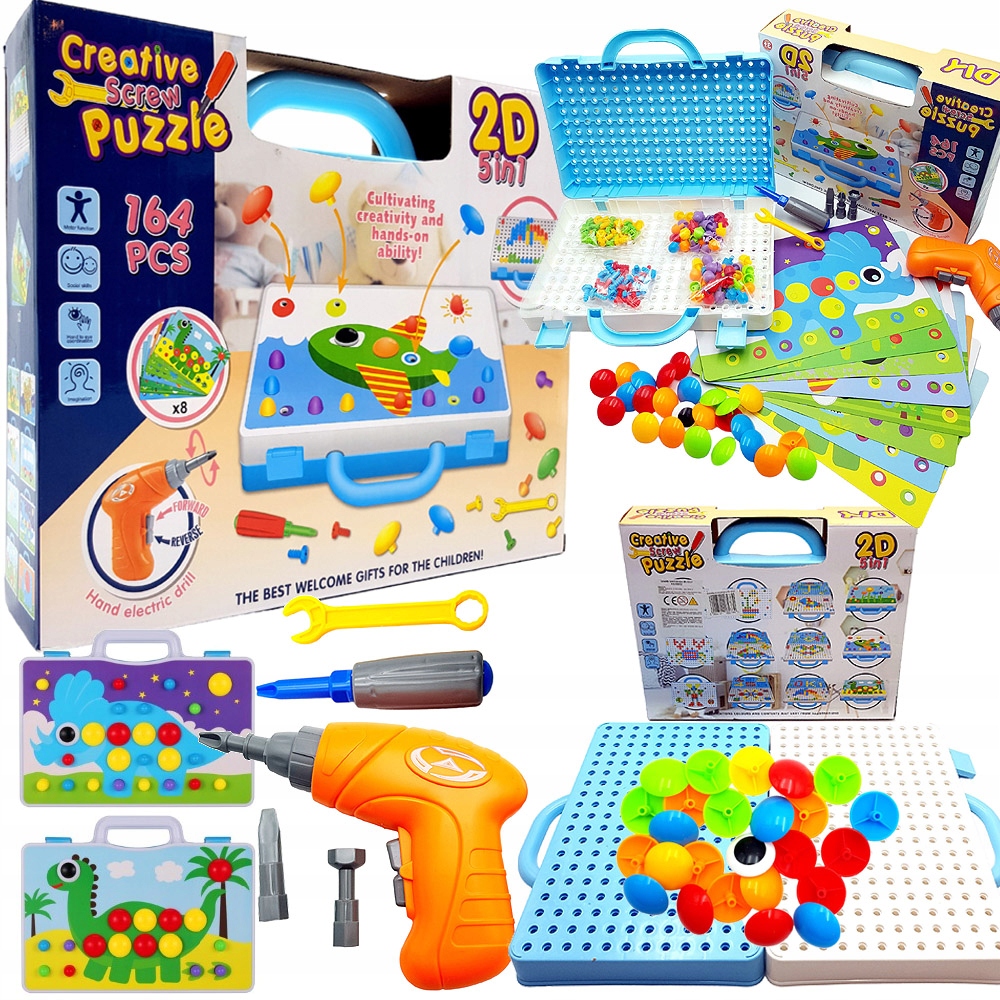 Креативний навчальний набір, який поєднує кілька функцій. У набір входять конструктори, пазли та мозаїки, а також викрутка, яка полегшує складання та збирання. Це іграшка, яка дозволяє розвивати ручні навички та логічне мислення. У набір входить: