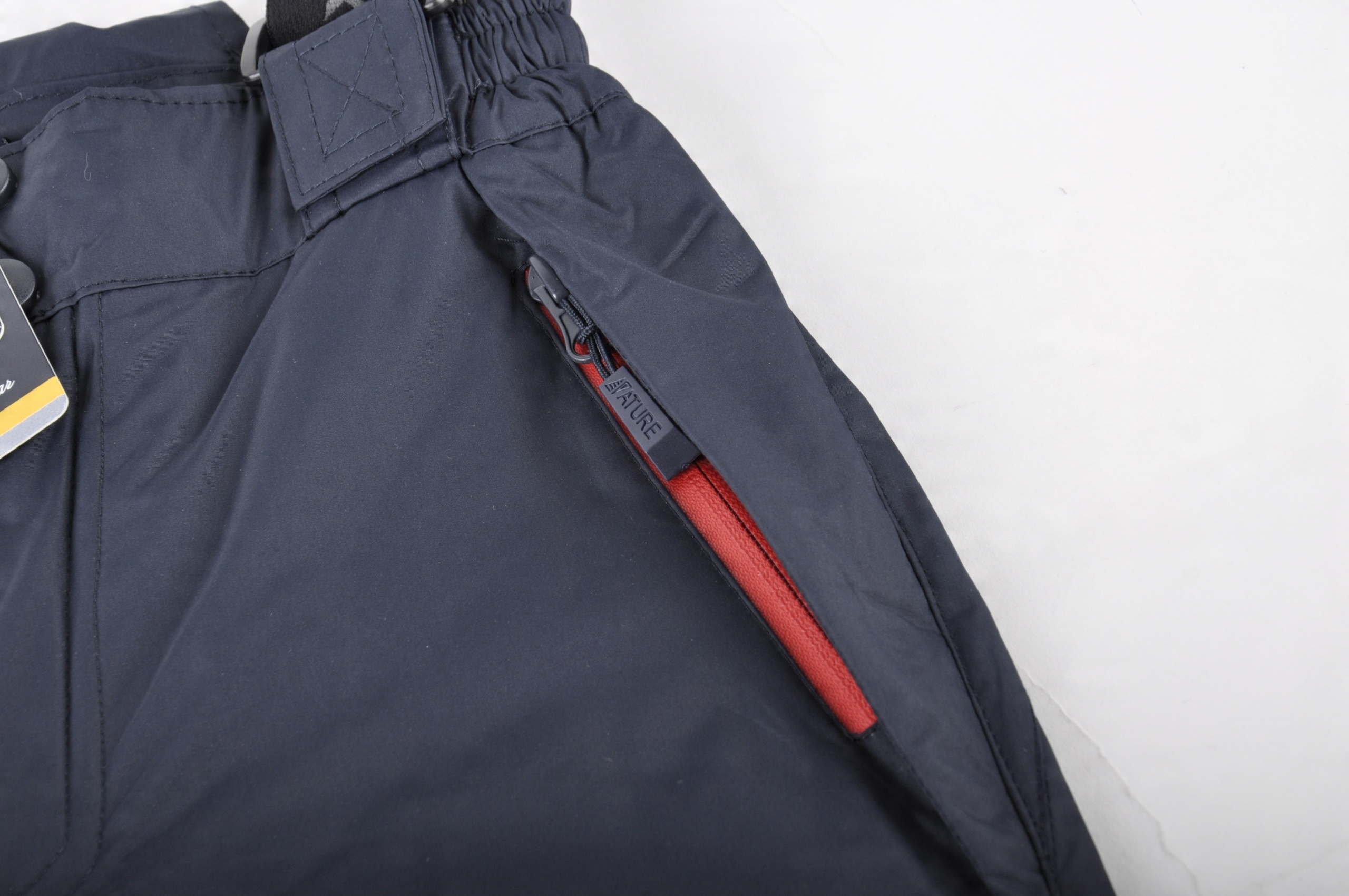 - штани мають чорні підсилення внизу, що захищають від порізів кантом лижі тощо.