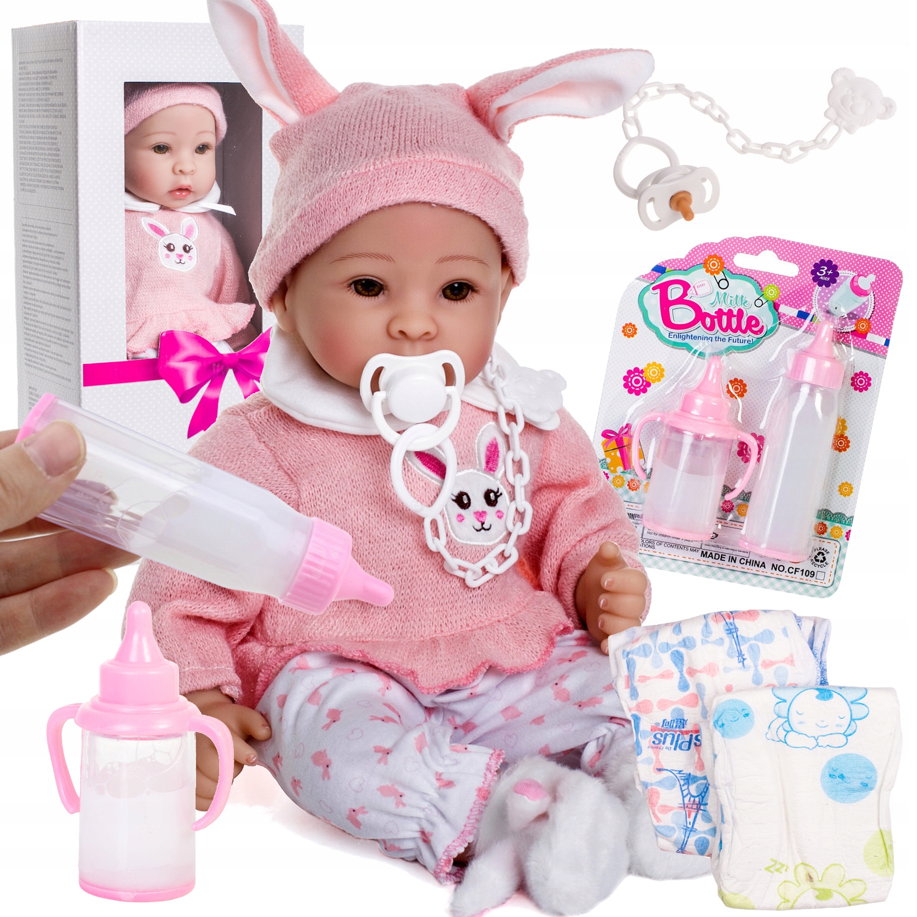 Дитячі ляльки звуки + соска + пляшки + памперси