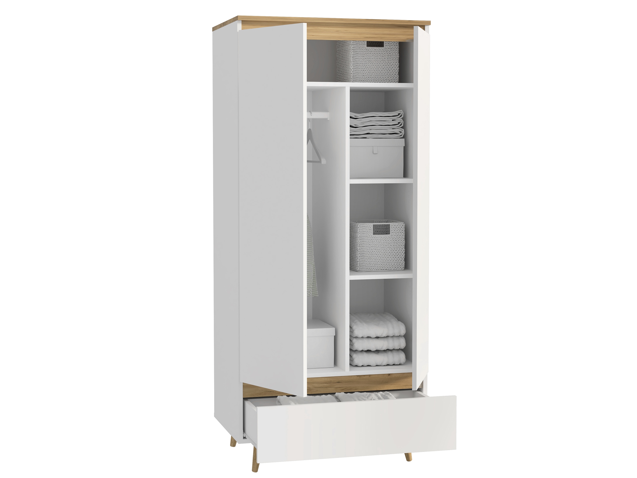 Система Norge – це простота та елегантність, використання арктичного білого та теплого крафтового дуба, що є ідеальним поєднанням. Меблі з цієї колекції встановлені на ніжках з натурального бука, просочених маслом.