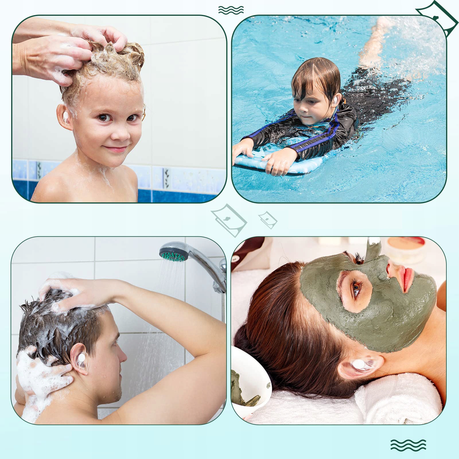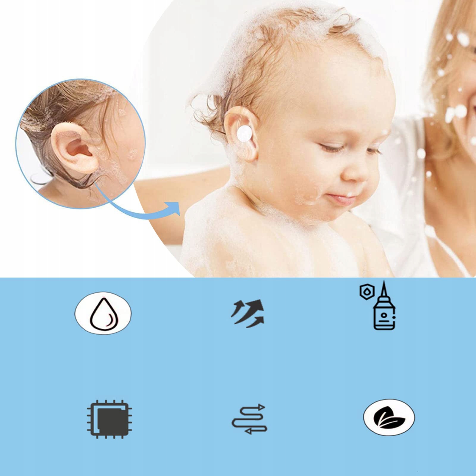 Різноманітне використання: підходить для плавання або дитячого душу; Беруші служать практичним інструментом для захисту вух від води під час прийняття душу, миття шампунем або догляду за волоссям