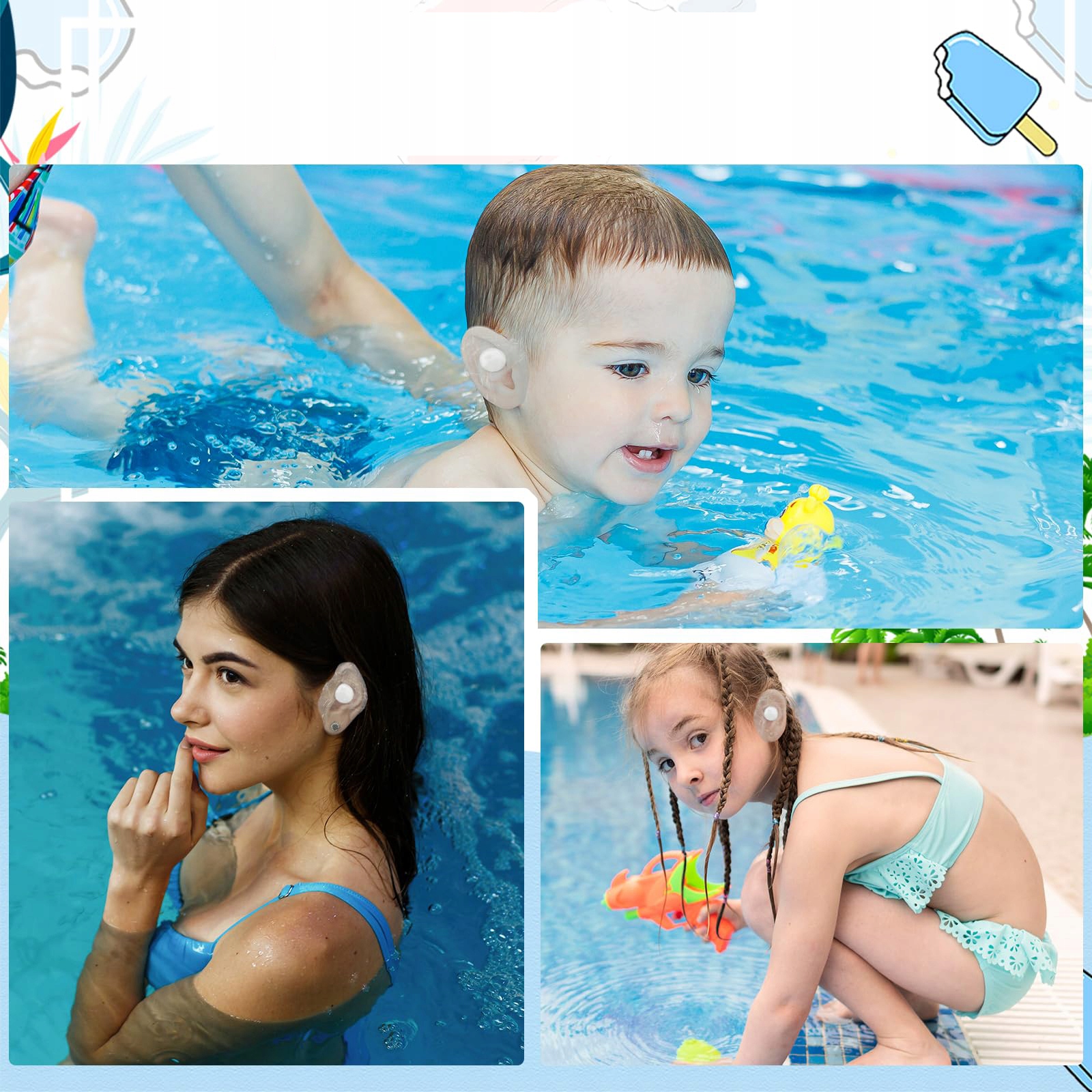 Відмітний дизайн:Водонепроникна наклейка для вух має легкий у використанні -відривна наклейка на звороті, яка може підтримувати в'язкість клейового шару; вони також мають збільшену та більш щільну м’яку бавовну, яка ефективно запобігає потраплянню води у вухо; Не хвилюйтеся, що вода потрапить у вуха дитини.