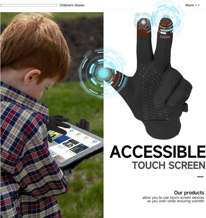 дитячі рукавички для блакит для сенсорного екрану, вітряні теплі рукавички, що не мають велосипедних рукавичок для дітей хлопчиків на відкритому повітрі. Зручний і добре адаптується до рук дитини, а матеріал для шкіри дозволяє дитині використовувати неприємності дотику: функція сенсорного екрана оснащена пальцями великого пальця, що вказує на та середину, щоб діти могли відчувати чутливість до навчальних машин, смартфонів та таблеток.