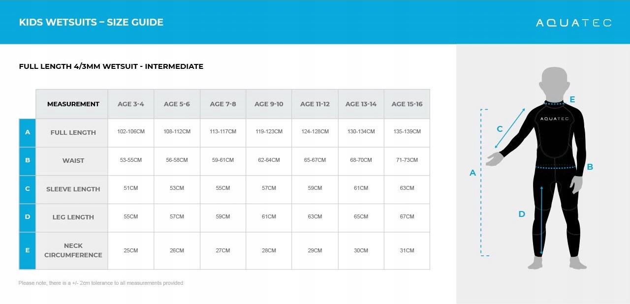 дитячі піни, призначені для відкритих вод, доступні у 2 товщини неопрену: 2 мм і 4/3 мм. Високоякісні комбінезони доступні у всіх розмірах для дітей у віці від 5-6 до 15-16 років.