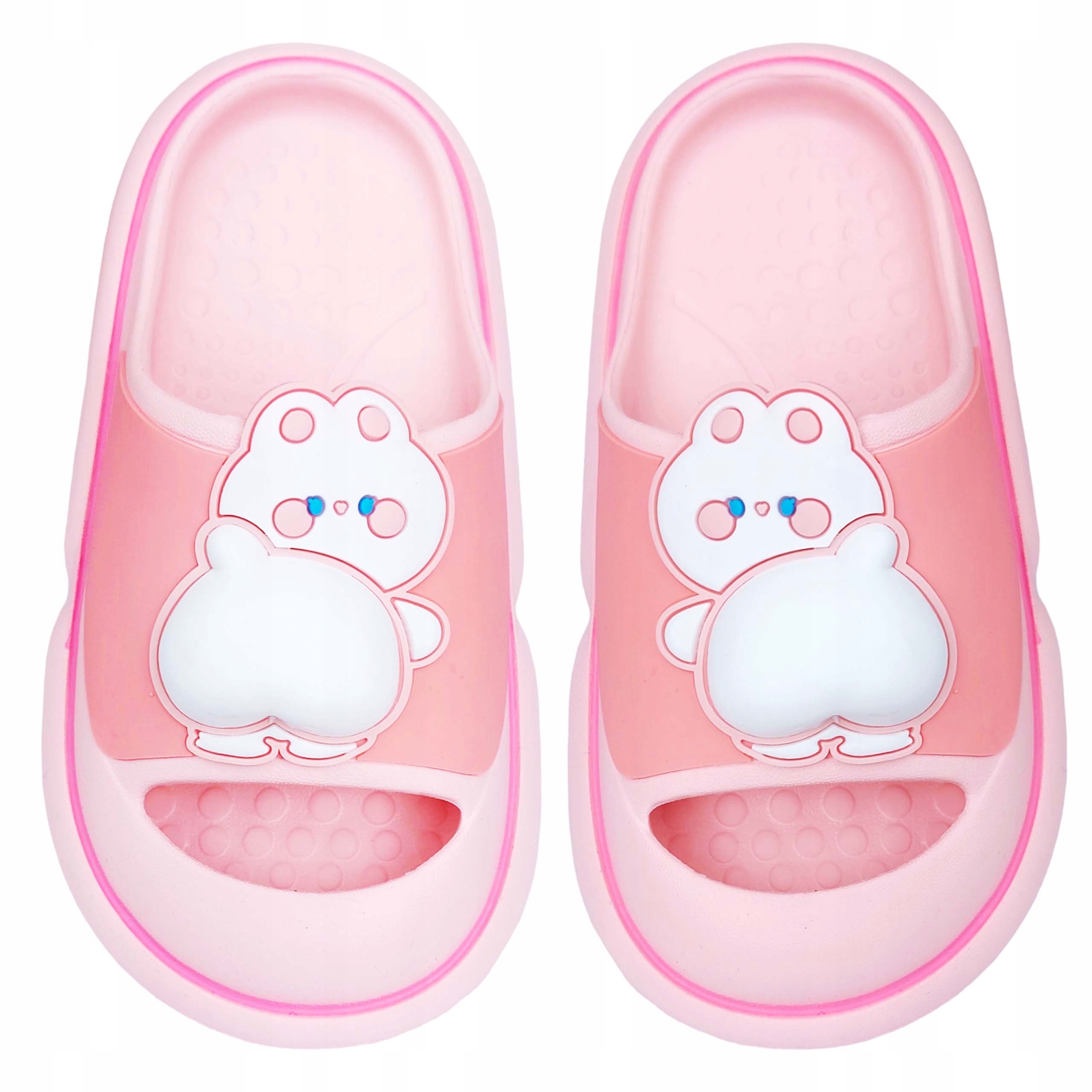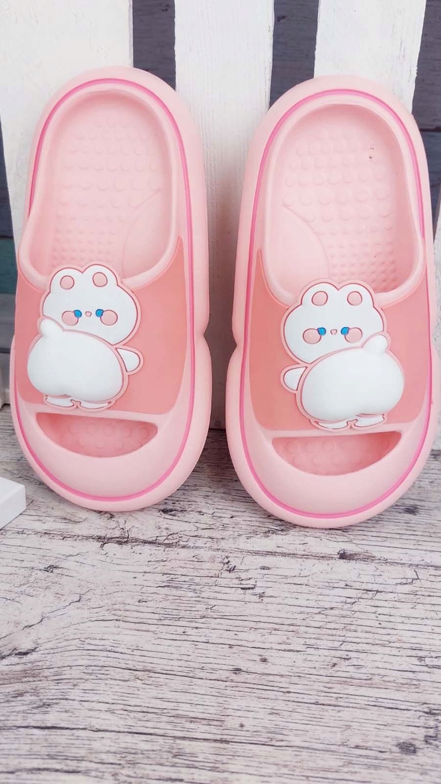ПОРАДИ дитячі рожеві шльопанці. На передній частині клапанів є фантастичний зайчик з 3D попою. Виготовлений з легкого спіненого матеріалу. Легко підтримувати в чистоті. Вони ідеально підходять для басейну, пляжу, душу, а також можуть замінити домашні капці.