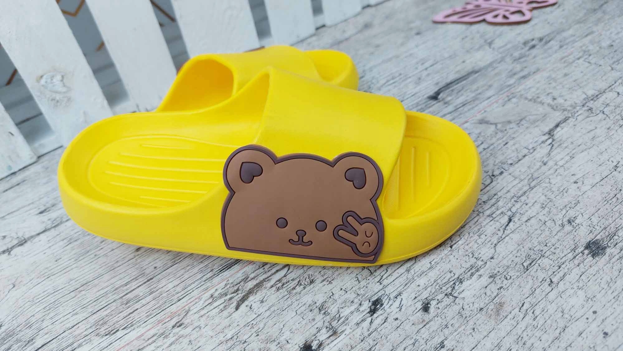 Дитячі шльопанці з милим ведмедиком збоку, виготовлені з легкого поролону. Легко підтримувати в чистоті. Вони ідеально підходять для басейну, пляжу, душу, а також можуть замінити домашні тапочки.