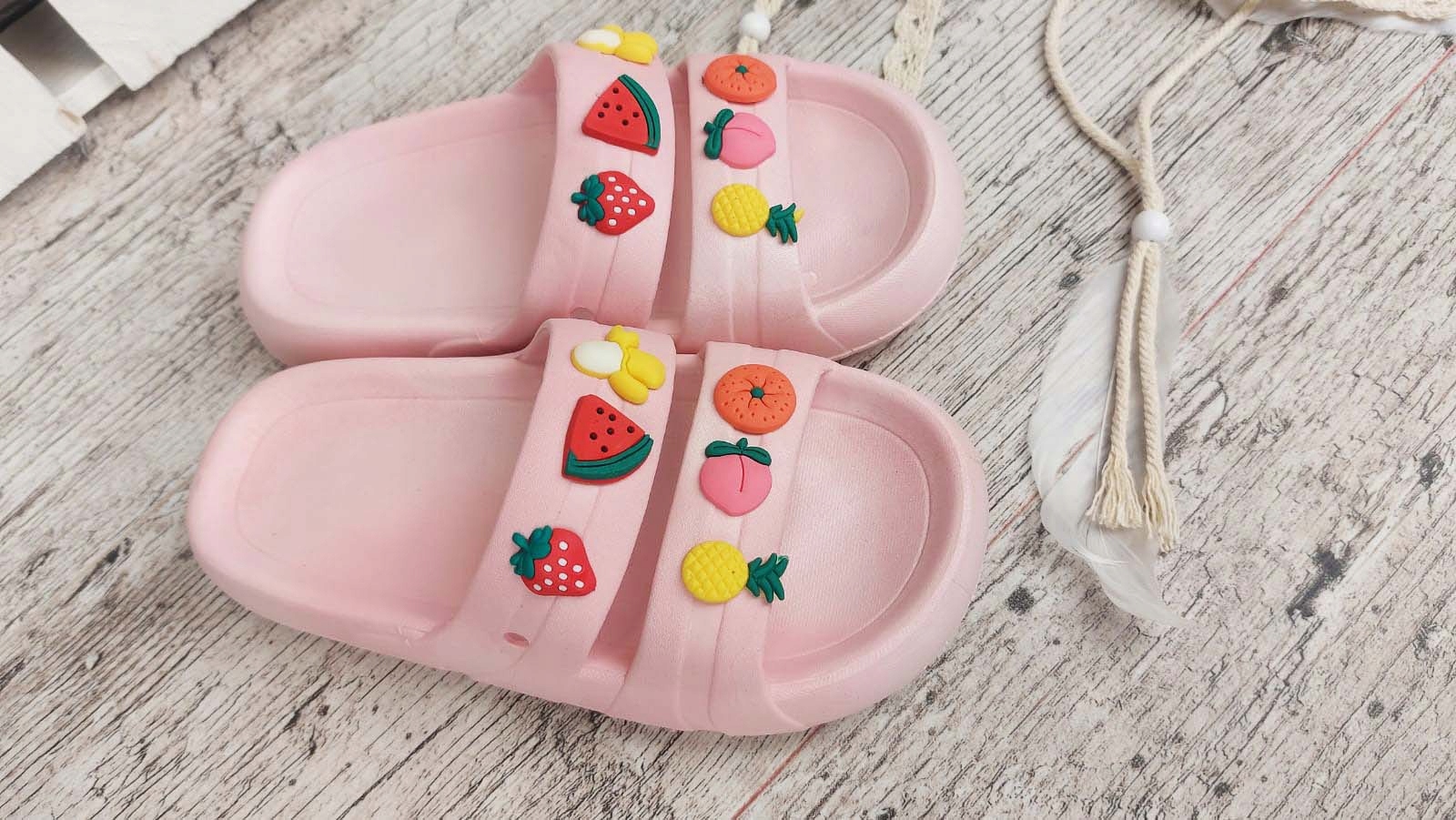 МИЛІ та зручні шльопанці з солодким фруктовим декором, виготовлені з легкого поролону. Додатковою перевагою прикрас є можливість їх зняти або прикріпити на інше місце. Легко підтримувати в чистоті. Вони ідеально підходять для басейну, пляжу, душу, а також можуть замінити домашні тапочки.