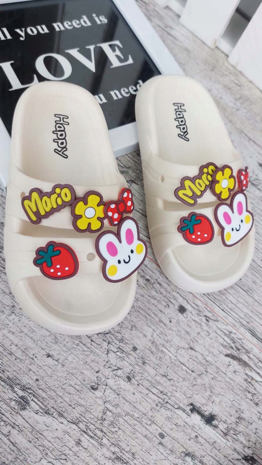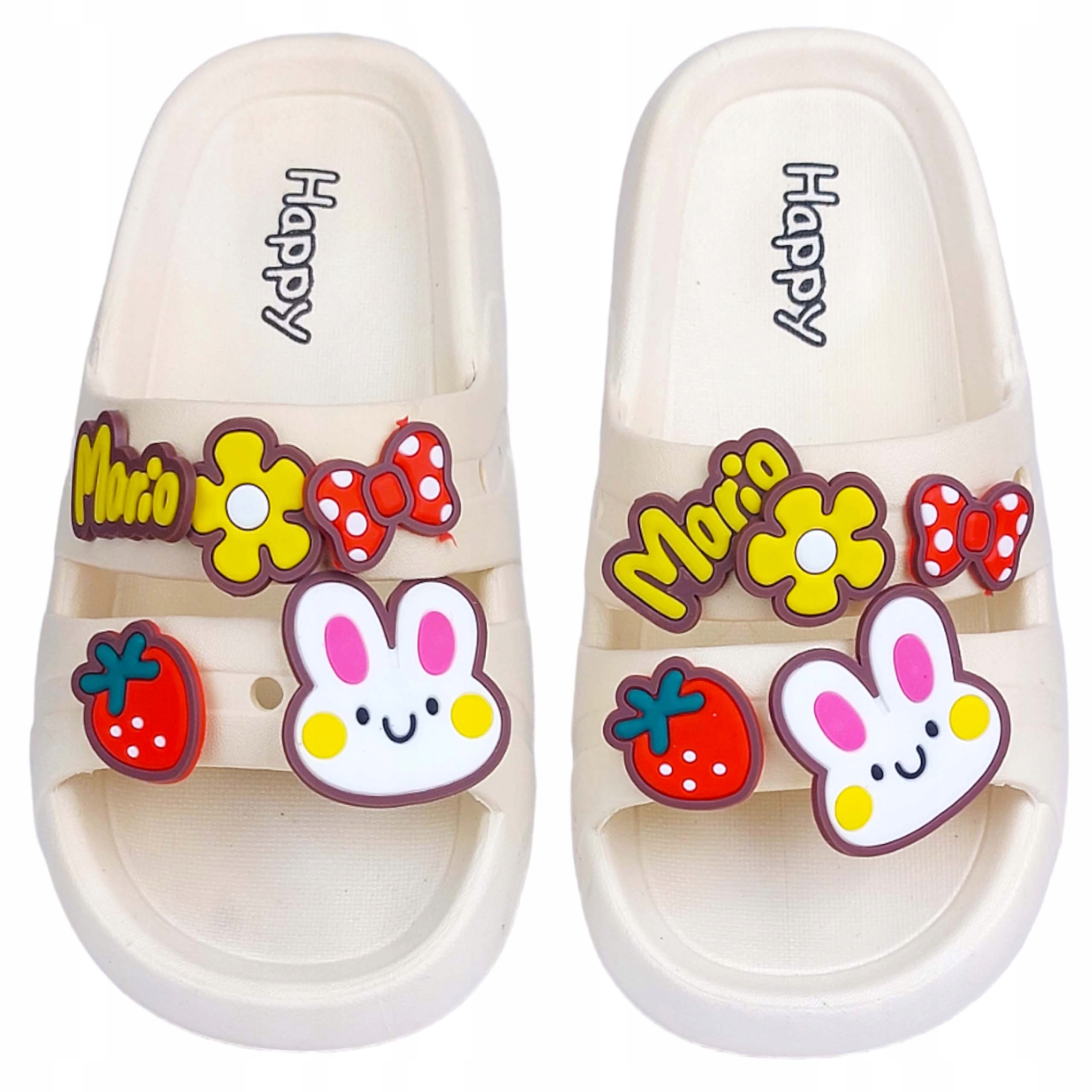 МИЛІ та зручні шльопанці з солодким декором, виготовлені з легкого спіненого матеріалу. Декоративні елементи: кролик, бант, квітка, полуниця, напис маріо. Додатковою перевагою прикрас є можливість їх зняти або прикріпити на інше місце. Легко підтримувати в чистоті. Ідеально підходять для басейну, пляжу, душу, а також можуть замінити домашні тапочки.